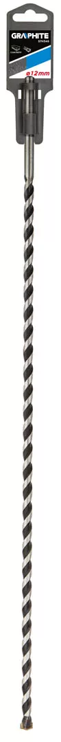 Wiertło do betonu GRAPHITE (nr ref. 57H346) o średnicy 12.0 mm posiada końcówkę widiową o kształcie motylkowym. Pozwala to na wiercenie otworów w betonie i materiałach ceramicznych bez obawy o uślizgiwanie się wiertła na boki w pierwszej fazie wiercenia.