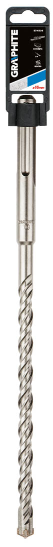 Wiertło do betonu GRAPHITE (nr ref. 57H508) z uchwytem typu SDS Max o średnicy 16.0 mm dzięki krzyżowej końcówce, wykonanej z drobnoziarnistego węglika spiekanego, pozwala wydajnie wiercić otwory w betonie. Podwójna spirala typu S4 zapewnia właściwe odprowadzanie urobku, zabezpieczając wiertło przed przegrzaniem.