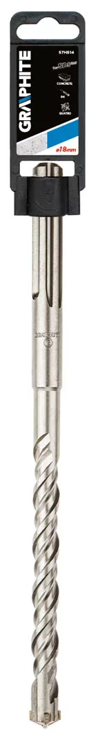 Wiertło do betonu GRAPHITE (nr ref. 57H514) z uchwytem typu SDS Max o średnicy 18.0 mm dzięki krzyżowej końcówce, wykonanej z drobnoziarnistego węglika spiekanego, pozwala wydajnie wiercić otwory w betonie. Podwójna spirala typu S4 zapewnia właściwe odprowadzanie urobku, zabezpieczając wiertło przed przegrzaniem.