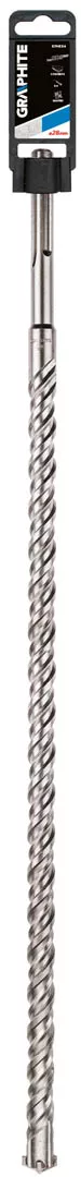 Wiertło do betonu GRAPHITE (nr ref. 57H534) z uchwytem typu SDS Max o średnicy 28.0 mm dzięki krzyżowej końcówce, wykonanej z drobnoziarnistego węglika spiekanego, pozwala wydajnie wiercić otwory w betonie. Podwójna spirala typu S4 zapewnia właściwe odprowadzanie urobku, zabezpieczając wiertło przed przegrzaniem.