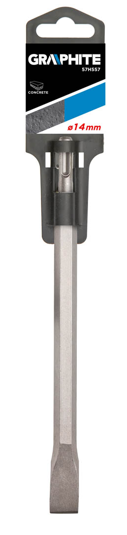 Dłuto GRAPHITE (nr ref. 57H557) z uchwytem SDS+ o szerokości 20 mm dzięki wykonaniu z hartowanej stali węglowej idealnie nadaje się do mechanicznego wykuwania otworów i bruzd w elementach betonowych, kamiennych, ceglanych.