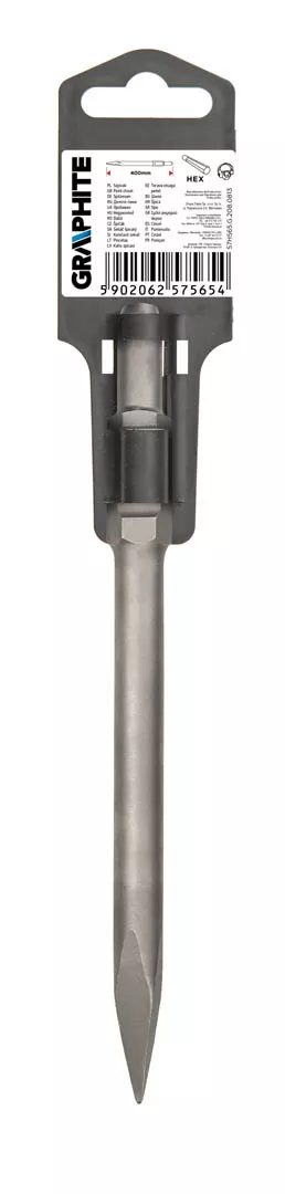 Szpicak GRAPHITE (nr ref. 57H565) z uchwytem HEX dzięki wykonaniu z hartowanej stali węglowej idealnie nadaje się do mechanicznego wykuwania otworów w elementach betonowych, kamiennych, ceglanych.