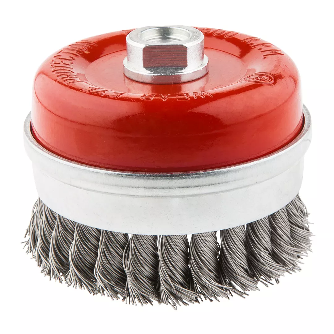 Szczotka druciana doczołowa wzmacniana 100 mm x M14, INOX