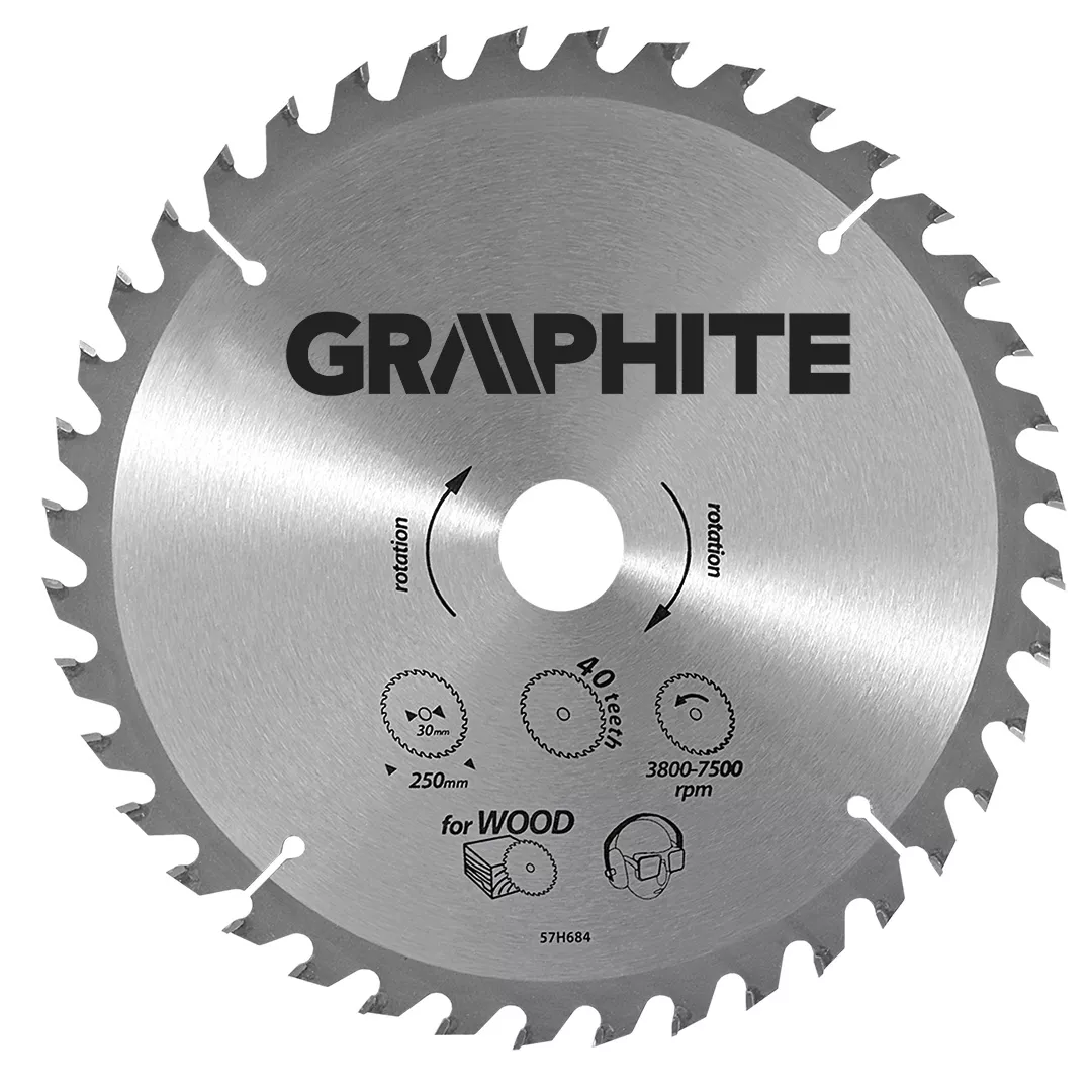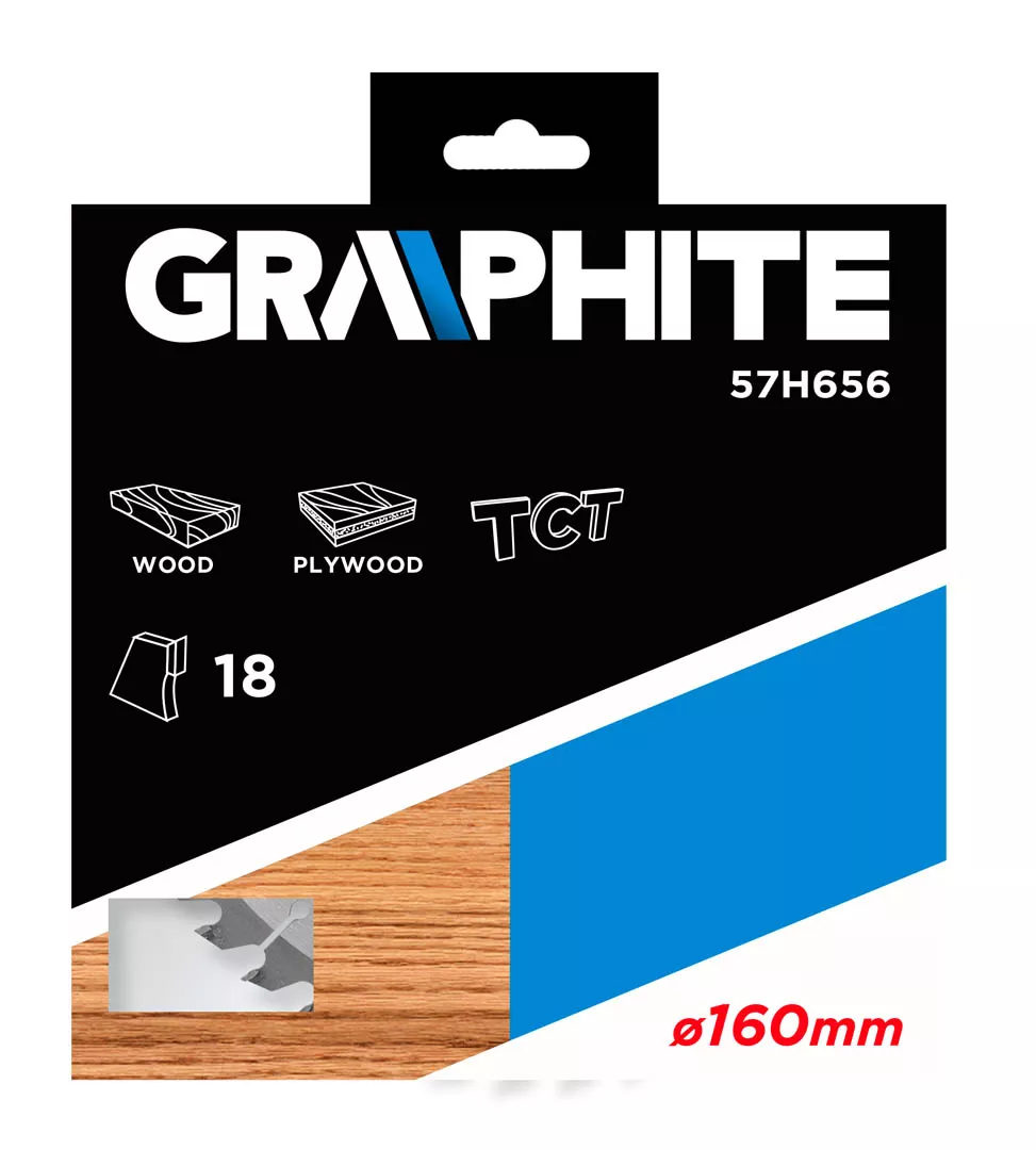 Tarcza do pilarki widiowa GRAPHITE (nr ref. 57H656) o średnicy zewnętrznej 160 mm, wykonana ze stopu stali manganowej MN65 o dużej odporności na temperaturę i odkształcenia. Zęby z nakładkami z węglika spiekanego YG6A pozwalają na zgrubne cięcie drewna i materiałów drewnopochodnych, takich jak sklejka, płyta wiórowa, MDF. Zawarte w opakowaniu pierścienie redukcyjne umożliwiają zastosowanie tarczy do większości modeli pilarek.