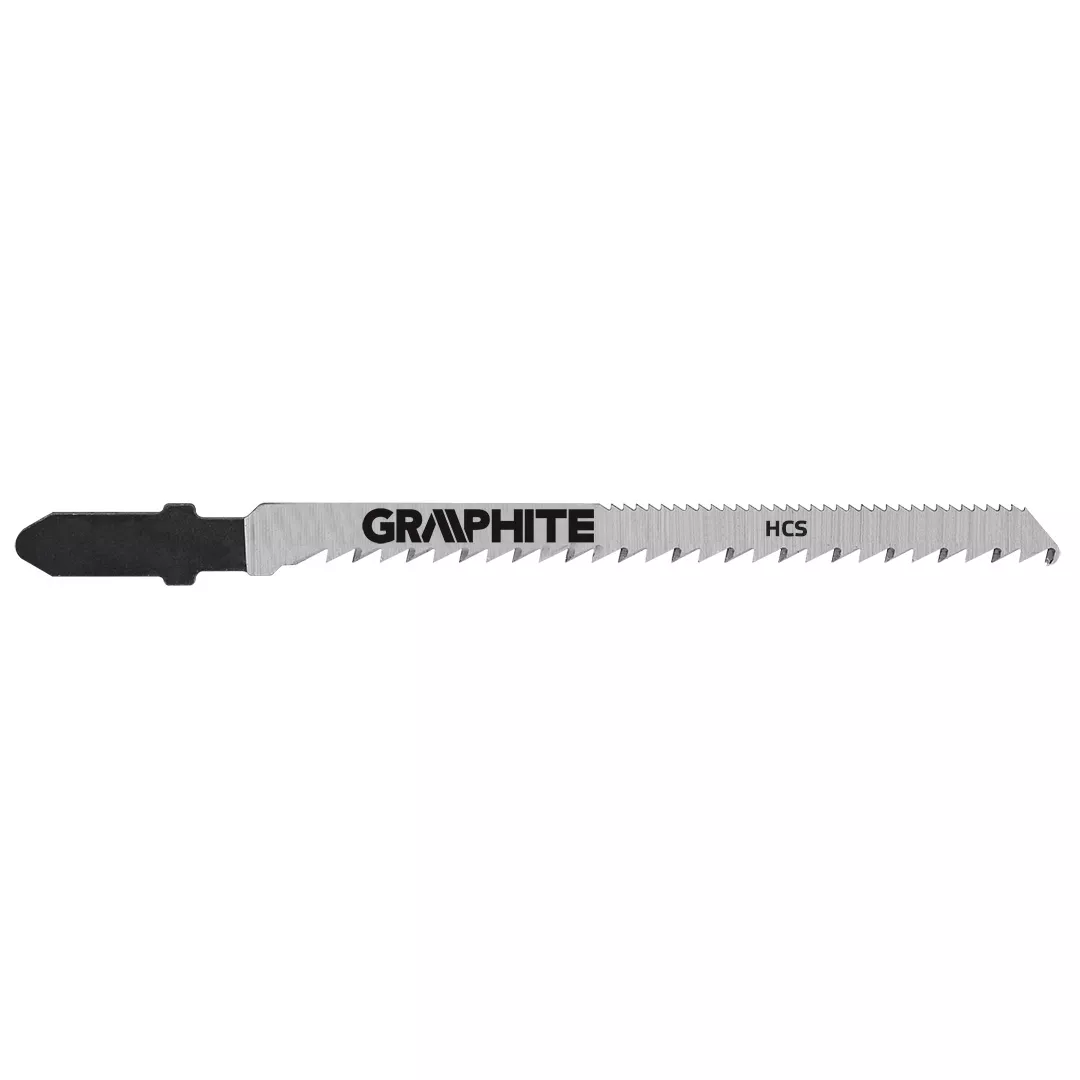 Brzeszczoty do wyrzynarki GRAPHITE (nr ref. 57H769) o podziałce 10TPI i długości 75 mm, służące do dokładnego cięcia drewna o grubości 4 - 30 mm po ciasnych łukach (zęby z obu stron brzeszczotu). Uchwyt typu T pozwala stosować brzeszczoty we wszystkich wyrzynarkach z uchwytem typu BOSCH i uchwytem uniwersalnym. Zastosowanie stali CrV (chromowo- wanadowej) nadaje brzeszczotom wysoką sprężystość i odporność na wysokie temperatury.