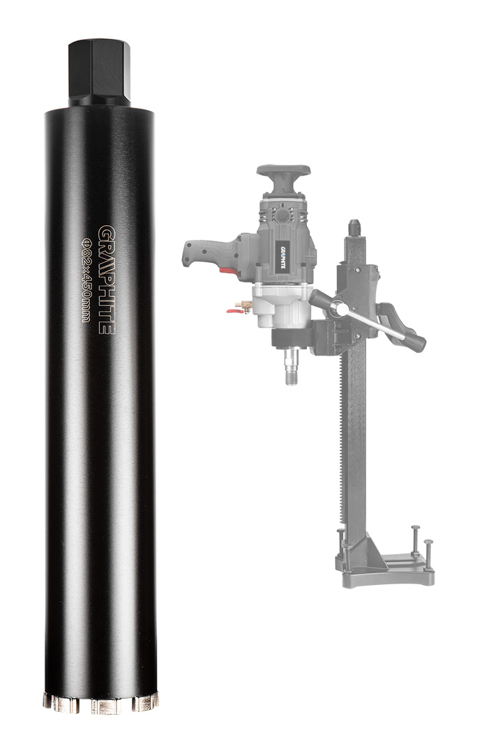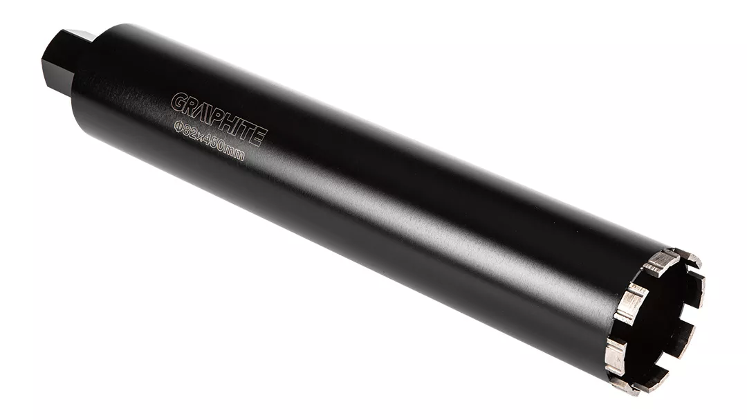 Otwornica diamentowa do wiertnicy 58G540 82 × 450 mm × 8T, 57H861 marki GRAPHITE to otwornica przeznaczona do wiertnicy diamentowej o numerze katalogowym 48G540. Akcesorium charakteryzuje się średnicą 82 mm oraz długością 450 mm. Posiada 8T zębów o wysokości 10 mm oraz gwint 1,1/4 UNC. Otwornica marki GRAPHITE wykonana została z solidnej stali. Posiada bezszwową rurę oraz zęby spawane laserowo. Będzie niezbędna podczas pracy z betonem, żelbetonem, ceramiką, granitem czy asfaltem. Polecana do zastosowań profesjonalnych jak i w różnorodnych zadaniach majsterkowiczów.