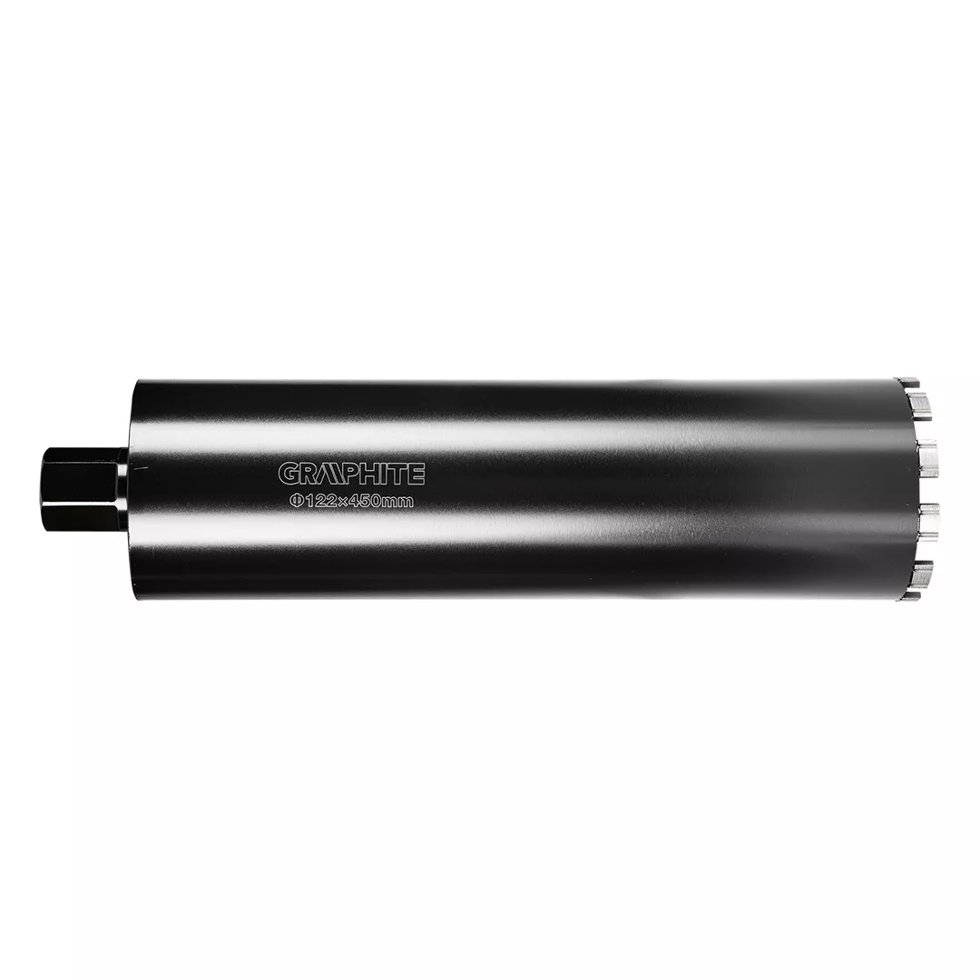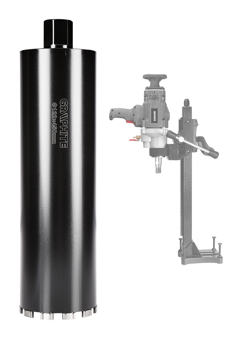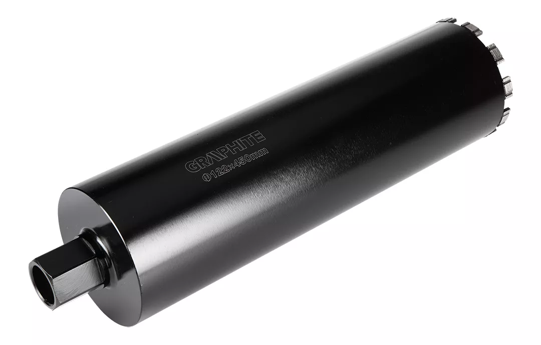 Otwornica diamentowa do wiertnicy 58G540 122 × 450 mm × 11T, 57H864 marki GRAPHITE to otwornica przeznaczona do wiertnicy diamentowej o numerze katalogowym 48G540. Akcesorium charakteryzuje się średnicą 122 mm oraz długością 450 mm. Posiada 12T zębów o wysokości 10 mm oraz gwint 1,1/4 UNC. Otwornica marki GRAPHITE wykonana została z solidnej stali. Posiada bezszwową rurę oraz zęby spawane laserowo. Będzie niezbędna podczas pracy z betonem, żelbetonem, ceramiką, granitem czy asfaltem. Polecana do zastosowań profesjonalnych jak i w różnorodnych zadaniach majsterkowiczów.