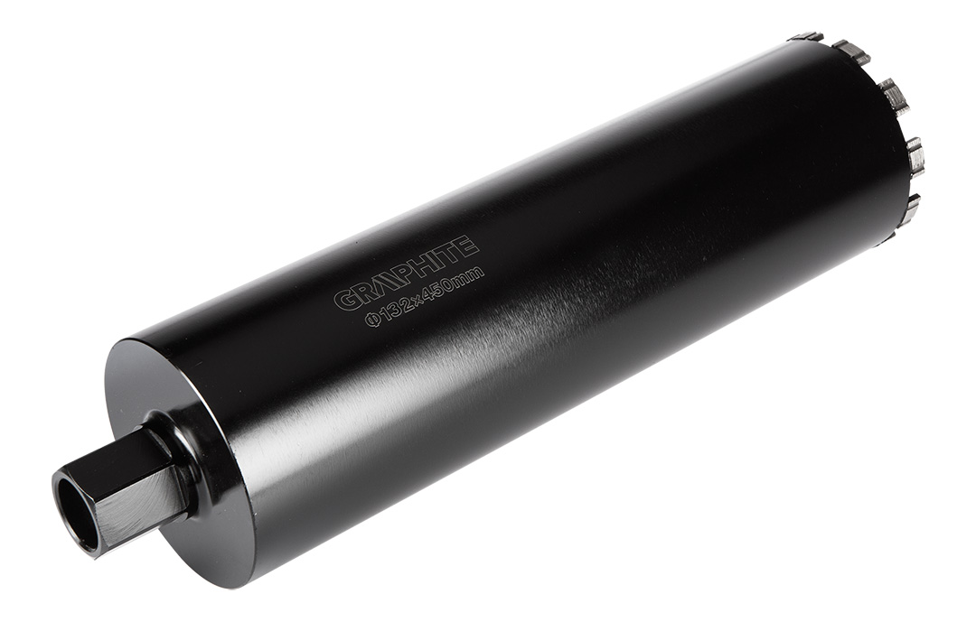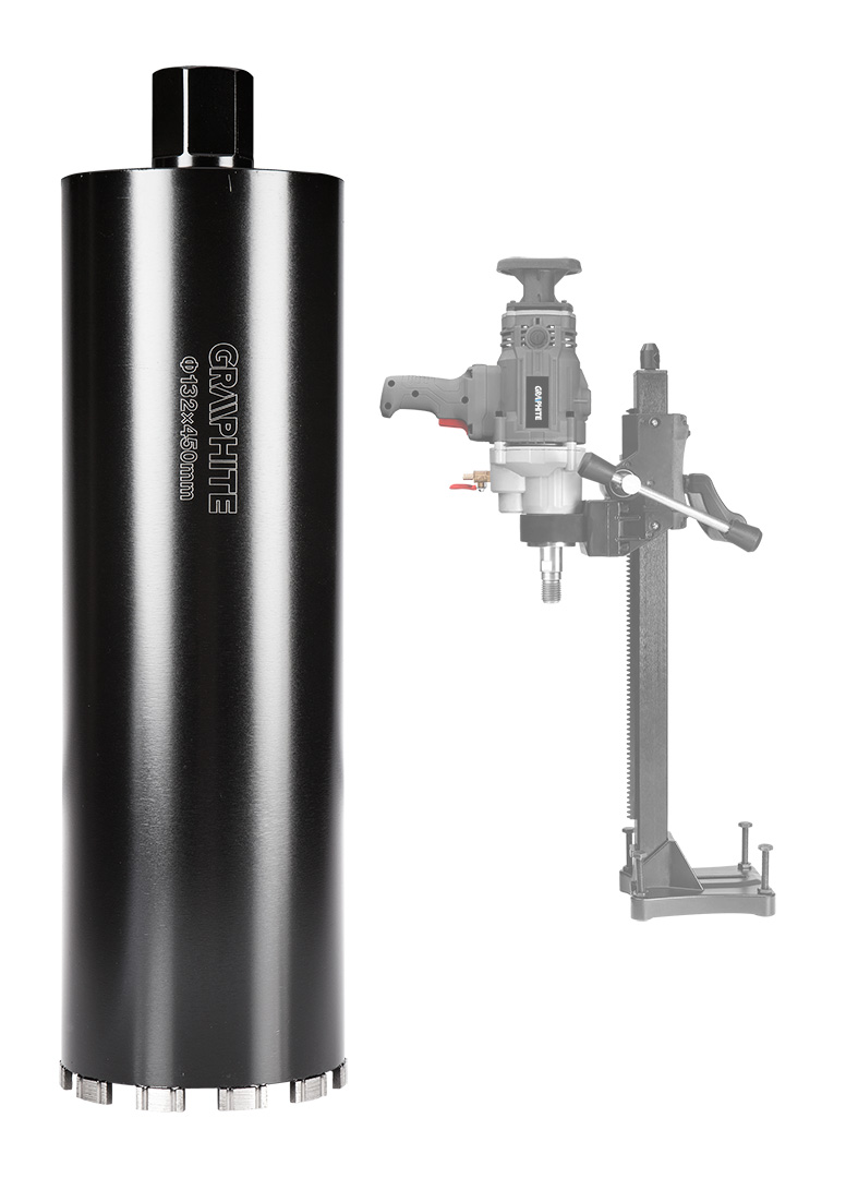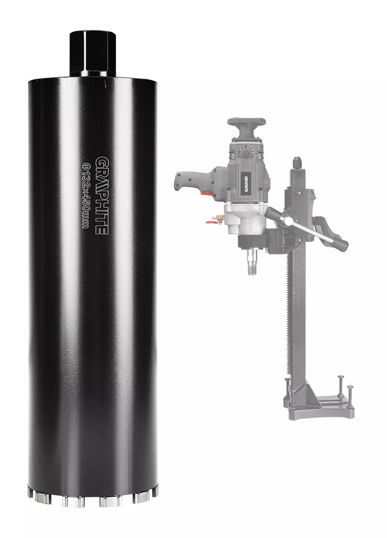 Otwornica diamentowa do wiertnicy 58G540 132 × 450 mm × 11T, 57H867 marki GRAPHITE to otwornica przeznaczona do wiertnicy diamentowej o numerze katalogowym 48G540. Akcesorium charakteryzuje się średnicą 132 mm oraz długością 450 mm. Posiada 12T zębów o wysokości 10 mm oraz gwint 1,1/4 UNC. Otwornica marki GRAPHITE wykonana została z solidnej stali. Posiada bezszwową rurę oraz zęby spawane laserowo. Będzie niezbędna podczas pracy z betonem, żelbetonem, ceramiką, granitem czy asfaltem. Polecana do zastosowań profesjonalnych jak i w różnorodnych zadaniach majsterkowiczów.