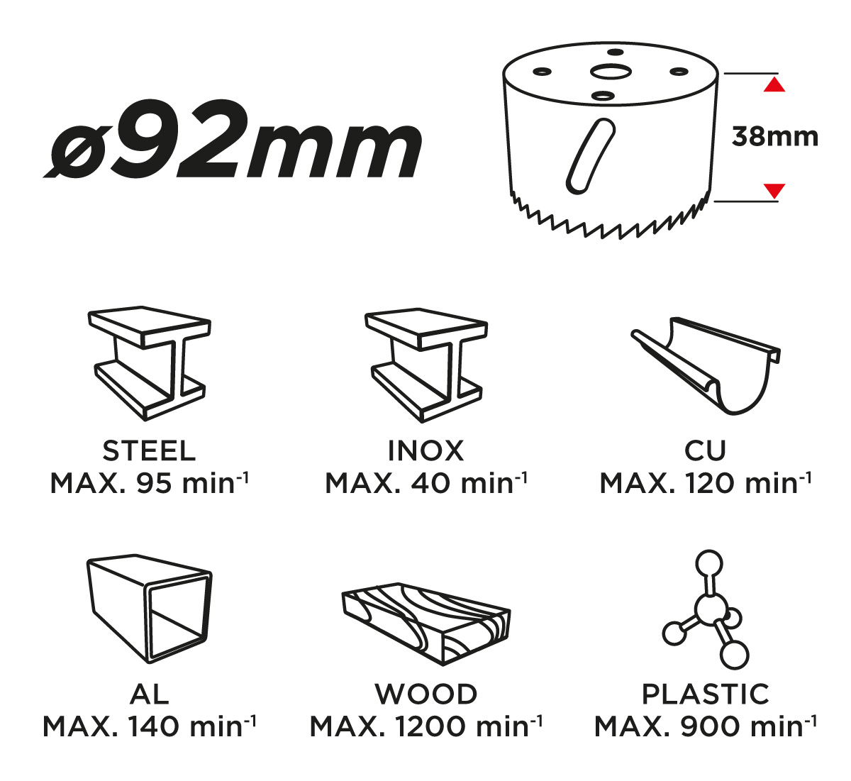 Otwornica bimetalowa GRAPHITE (nr ref. 57H915) o średnicy 92 mm, dzięki progresywnemu uzębieniu, wykonanemu ze stali szybkotnącej, pozwala na wydajne wiercenie precyzyjnych otworów w stali, stali nierdzewnej, drewnie, tworzywach, kompozytach.