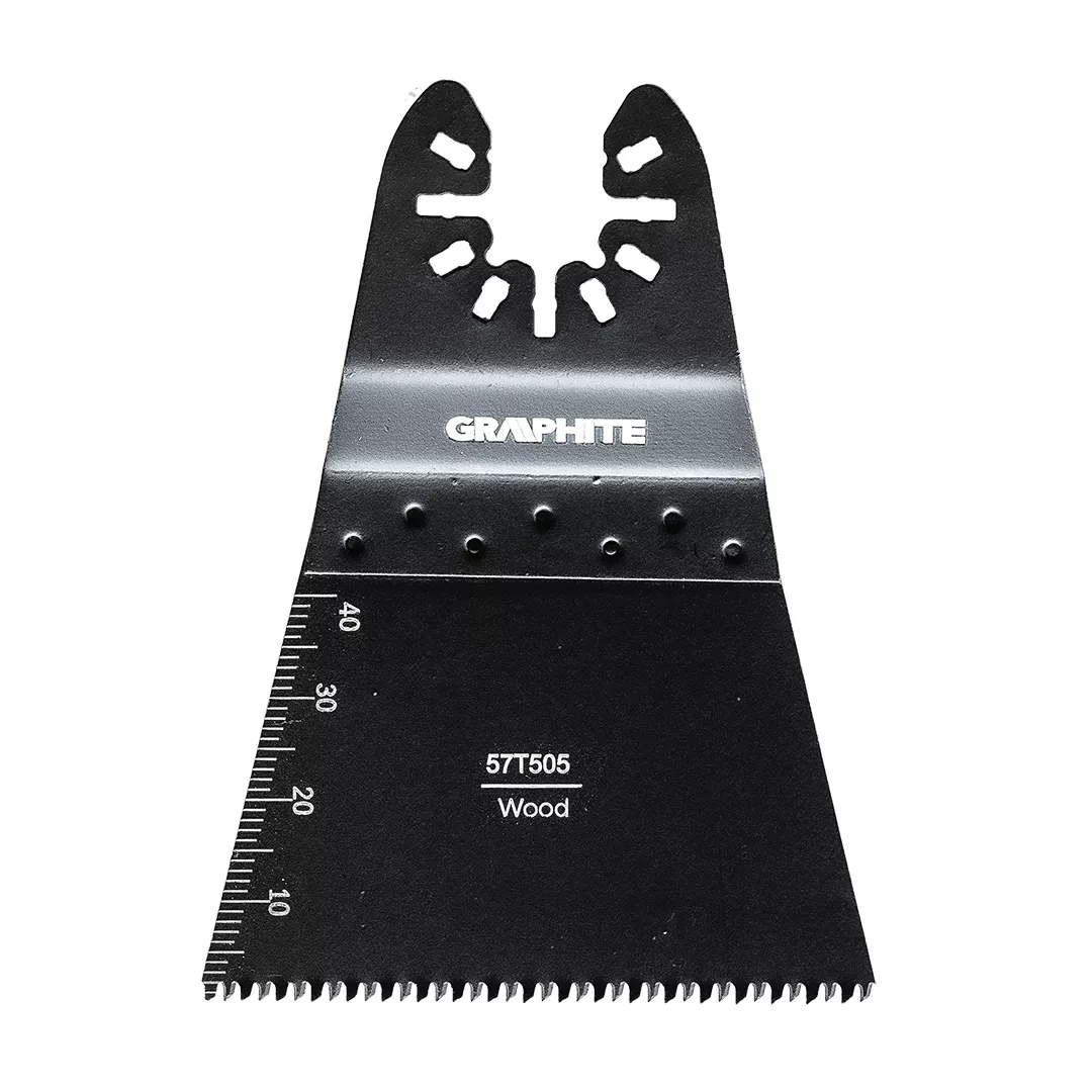 Brzeszczot do urządzenia wielofunkcyjnego, do cięcia wgłębnego 14 TPI, HCS, 65 mm 57T505 marki GRAPHITE to narzędzie wykonane z wytrzymałej stali węglowej (HCS), o szerokości roboczej 65 mm i 14 TPI. Brzeszczot przeznaczony jest do cięcia wgłębnego w drewnie. Zastosowanie trójstronnie ostrzonych zębów oraz ich rozstaw 1,75 mm - umożliwia szybkie i precyzyjne cięcie. Maksymalna głębokość cięcia wynosi 40 mm, a grubość ostrza to 0,7 mm. Brzeszczot do urządzeń wielofunkcyjnych od marki GRAPHITE to wybór do skutecznego przecinania drewna w pracach montażowych i remontowych.