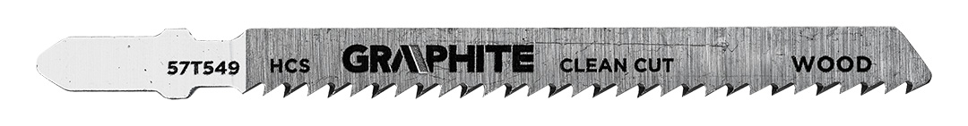 Brzeszczot do wyrzynarki, 10 TPI, HCS, uchwyt typu T, 2 sztuki, czyste cięcie 57T549 marki GRAPHITE to brzeszczot o gęstości uzębienia 10 TPI, wykonany z HCS oraz wyposażony w uchwyt typu T. W komplecie znajdują się 2 sztuki. Jego długość całkowita wynosi 100 mm, długość robocza 74 mm, szerokość 8 mm, grubość 1,5 mm, a rozstaw zębów 2,5 mm. Przeznaczony do cięcia drewna iglastego, płyty wiórowej, sklejki stolarskiej oraz płyt pilśniowych o grubości 3–30 mm. Brzeszczot marki GRAPHITE umożliwia czyste cięcie.