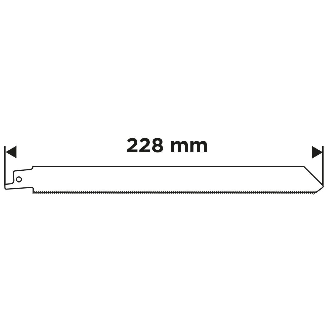 Brzeszczot do piły szablastej, BIM 228 x 19 x 0,9 mm, 18 TPI, 57T560 marki GRAPHITE to brzeszczot wykonany z bimetalu (BIM), o długości całkowitej 228 mm, szerokości 19 mm i grubości 0,9 mm. Posiada 18 zębów na cal (TPI) oraz rozstaw zębów 1,4 mm. Przeznaczony do prostego cięcia cienkiej blachy o grubości 1,5–4 mm, rur otwartych i zamkniętych, a także profili o średnicy od 5 do 175 mm. Elastyczna konstrukcja brzeszczotu GRAPHITE umożliwia pracę w trudniej dostępnych miejscach.