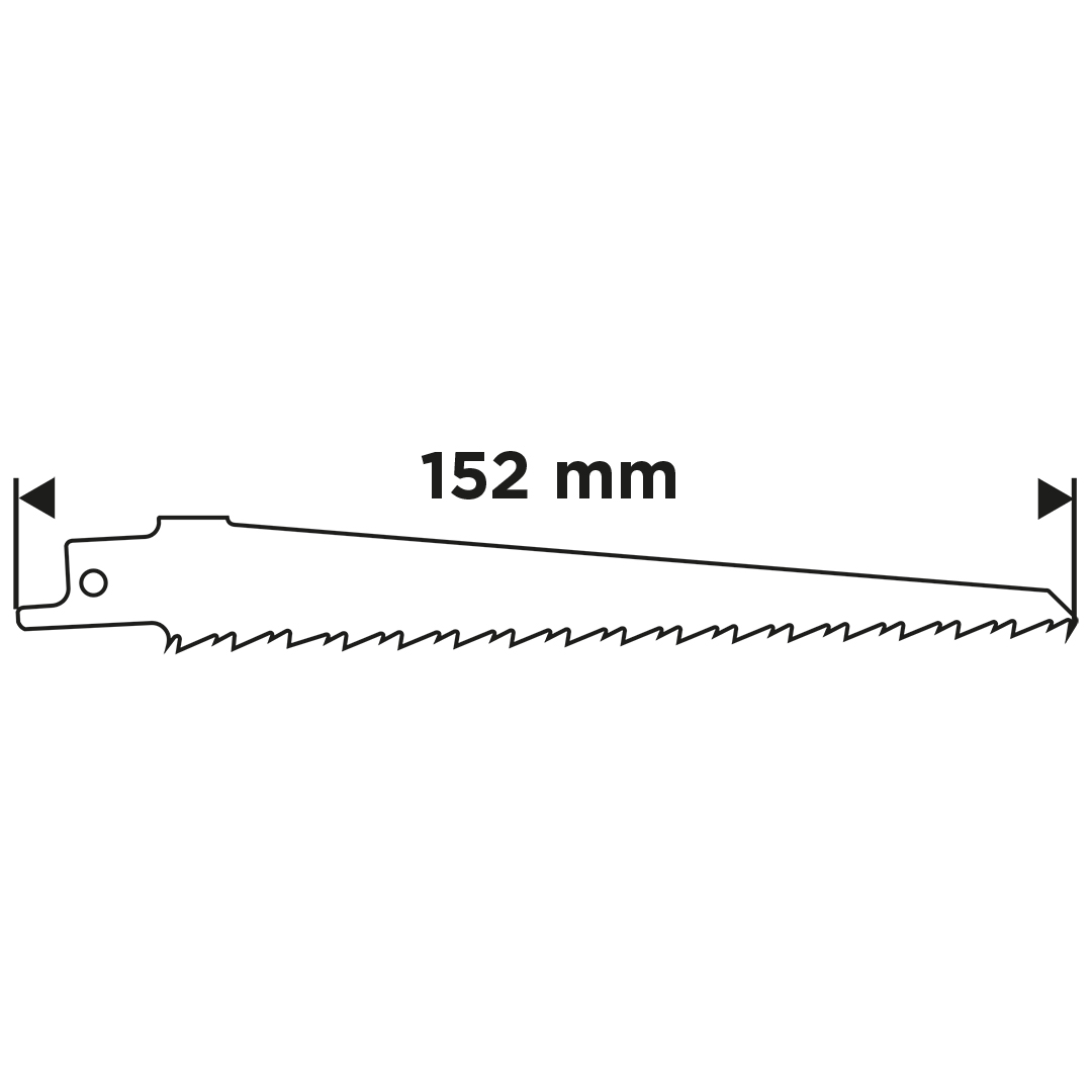 Brzeszczot do piły szablastej, HCS 152 x 19 x 1,3 mm, 6 TPI, 57T564 marki GRAPHITE to brzeszczot wykonany ze stali węglowej (HCS), o długości całkowitej 152 mm, szerokości 19 mm i grubości 1,3 mm. Posiada 6 zębów na cal (TPI) oraz rozstaw zębów 4 mm. Przeznaczony do czystego cięcia krzywoliniowego oraz wgłębnego takich materiałów jak: drewno konstrukcyjne, sklejka, tworzywo sztuczne (6-100 mm), panele drewniane (<75 mm), płyta wiórowa i MDF (6-60 mm). Konstrukcja brzeszczotu GRAPHITE umożliwia komfortowe cięcie w pracy warsztatowej.