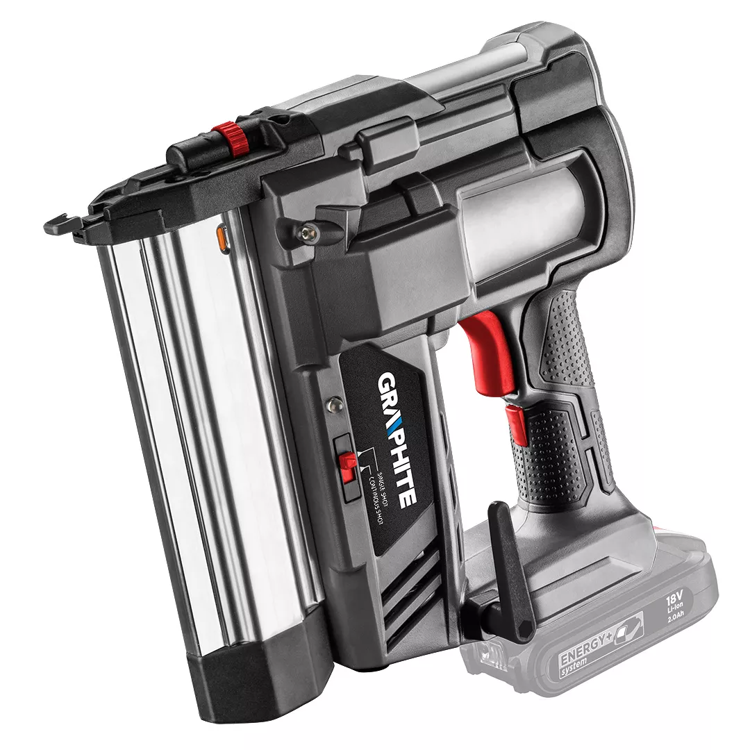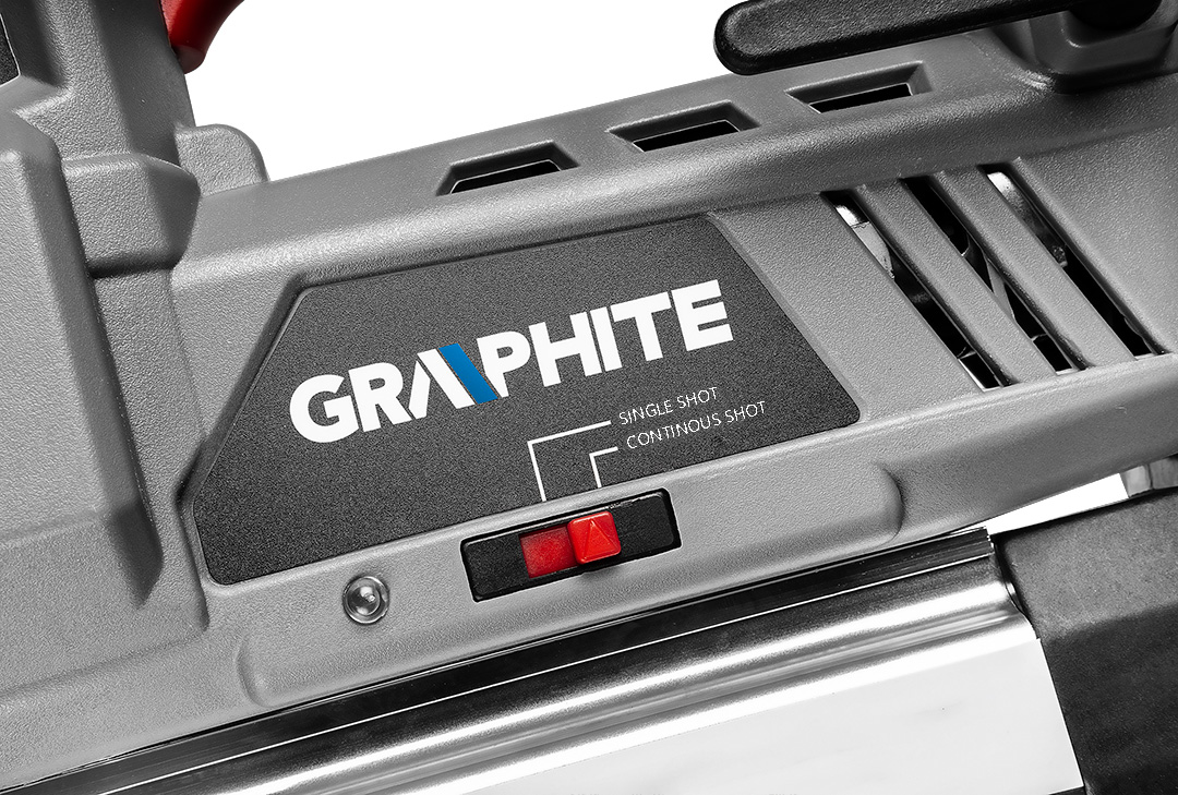 Zszywacz akumulatorowy 2 w 1 GRAPHITE to urządzenie łączące funkcje zszywacza i gwoździarki. Zszywacz przyspiesza pracę, ponieważ maksymalna prędkość wbijania zszywek lub gwoździ to aż 100/min. Urządzenie ma beznarzędziową regulację głębokości oraz funkcję strzału pojedynczego i ciągłego. Zszywacz jest zaopatrzony w wielofunkcyjny wskaźnik LED, oświetlenie, a dla większej wygody użytkowania ogumowany uchwyt.