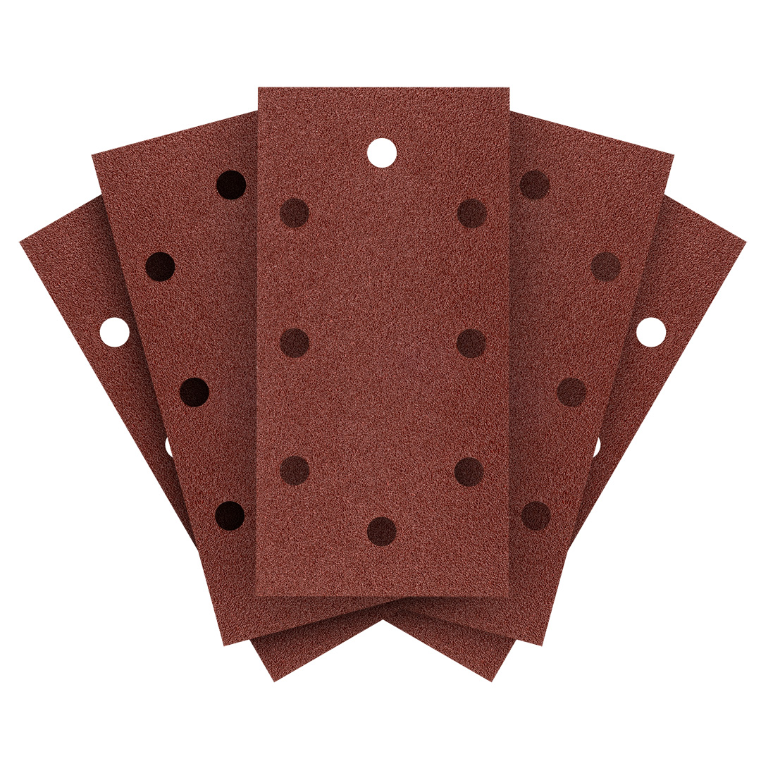 Papiery ścierne na rzep 93 x 185 mm, P80, 5 szt., z 8 otworami