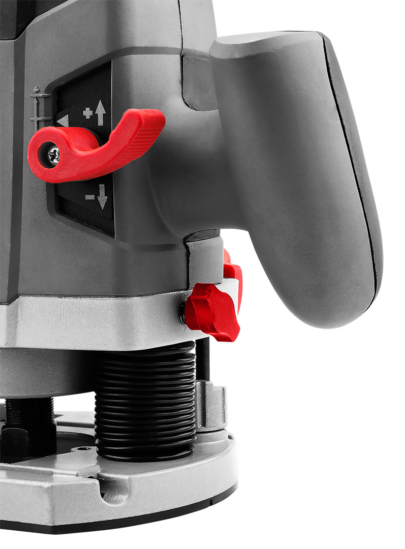 Frezarka górnowrzecionowa 1300 W, uchwyt 6-12 mm 59G717 marki GRAPHITE z wydajnym silnikiem o mocy 1300W, przeznaczona do frezowania otworów, rowków, krawędzi i profili we wszelkiego rodzaju materiałach drewnianych i drewnopochodnych, a także w tworzywach sztucznych oraz aluminium. Urządzenie posiada funkcję płynnej regulacji obrotów oraz głębokości frezowania. Zakres prędkości obrotowej na biegu jałowym wynosi od 11000 do 28000 min-1. Frezarka posiada blokadę wrzeciona oraz blokadę głębokości frezowania. Głębokość frezowania może być regulowana przy użyciu trzech przyrządów: 8-stopniowego odbojnika ogranicznika głębokości, ogranicznika głębokości z płynną nastawą (zakres 0-55 mm) oraz pokrętła do precyzyjnej regulacji głębokości (dokładność 0,1 mm). Urządzenie wyposażono w stabilną aluminiową stopę z nakładką z tworzywa sztucznego, zapewniającą łatwe prowadzenie urządzenia po wszelkiego rodzaju powierzchniach. Prowadnice silnika frezarki osadzone są w aluminiowym korpusie z gniazdami poddanymi specjalistycznej obróbce powierzchniowej, dzięki czemu urządzenie charakteryzuje się zwiększoną precyzją podczas zagłębiania. Ergonomiczne rękojeści frezarki zostały pokryte antypoślizgowym materiałem, dzięki czemu operowanie urządzeniem jest komfortowe i bezpieczne. Posiada ona wolny rozruch oraz praktyczne oświetlenie. Osłona przeciwpyłowa oraz adapter do odciągu pyłu wykonane zostały z przezroczystego poliwęglanu. Frezarkę wyposażono w duże pokrętło regulacji prędkości, umiejscowione w zasięgu prawego kciuka operatora. Przy lewym chwycie frezarki zlokalizowana jest łukowa, ergonomiczna dźwignia blokady prowadnicy korpusu, umożliwiająca operowanie nią bez odrywania ręki. W zestawie z frezarką znajdują się: klucz płaski, tuleja prowadząca do kopiowania według szablonu, szpikulec do frezowania po okręgu, adapter do odsysania pyłu z redukcją, trzy tuleje zaciskowe o średnicach 6, 8, 12 mm, aluminiowa prowadnica równoległa wyposażona w specjalną nakładkę z tworzywa, chroniącą przed zarysowaniami oraz mechanizm umożliwiający precyzyjną regulację położenia frezu względem krawędzi materiału. Urządzenie wyposażono w elastyczny i wytrzymały przewód zasilający w powłoce gumowej o długości 3m, dedykowany także do zastosowań profesjonalnych i przemysłowych zarówno wewnątrz jak i na zewnątrz pomieszczeń.
