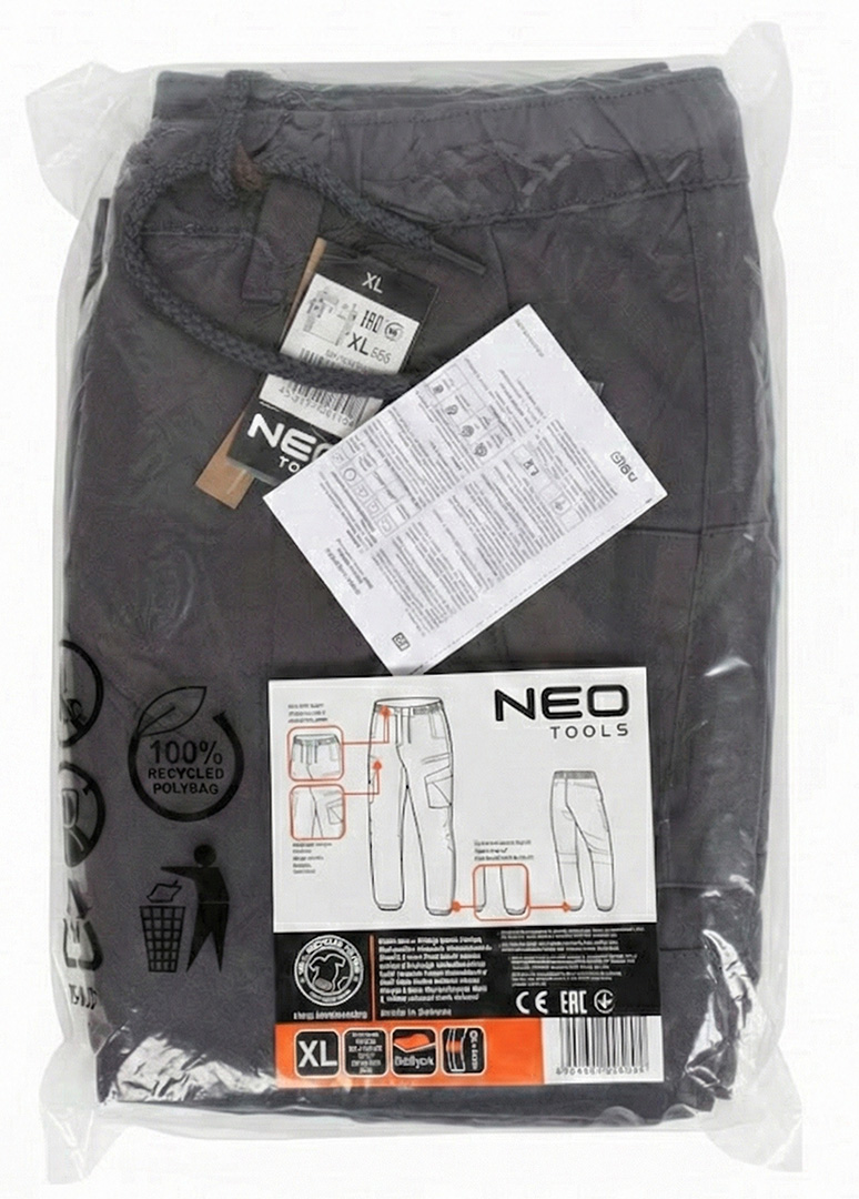 Spodnie robocze OUTDOOR, typu jogger, szare, rozmiar XL 81-285-2-XL marki NEO TOOLS to spodnie w kolorze szarym, charakteryzujące się tkaniną o splocie dobby o składzie 80% bawełna, 17% poliester i 3% spandex. Gramatura wynosi 280 g/m2. Wyposażone w gumkę i dodatkowy sznurek w pasie. Brak zapięcia na przodzie. Spodnie NEO TOOLS posiadają kieszenie boczne z wypustką, dodatkowe kieszenie na udach na zamek i kieszenie przestrzenne nad kolanem. Profilowane kolano na przodzie i tyle zapewnia większą wygodę. W dole nogawki mankiet z gumką od zewnętrznej strony gwarantuje swobodę ruchów. Z kolei dwie kieszenie z wypustką zapinane na zamek zapewniają większe możliwości przechowywania. Posiada drukowane logo na patce kieszeni nad kolanem, a także wszywkę imienną do lepszej personalizacji. Spodnie robocze OUTDOOR typu jogger jest unikalnym projektem własnym NEO TOOLS.