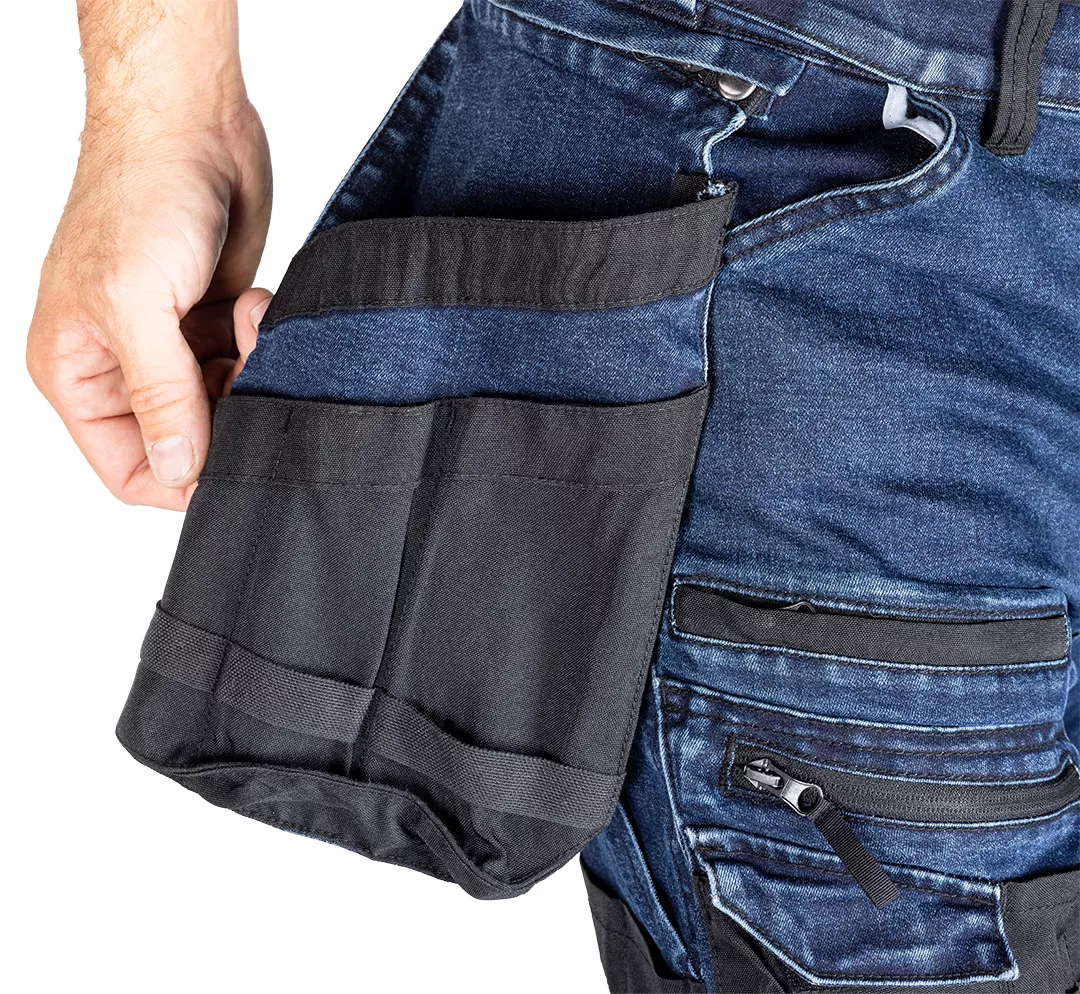 Spodnie robocze DENIM, wzmocnienia Cordura, odpinane kieszenie kaburowe, granatowe, rozmiar XL