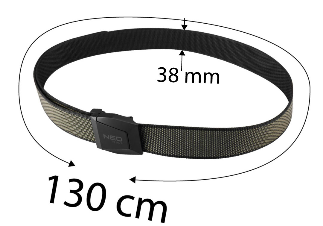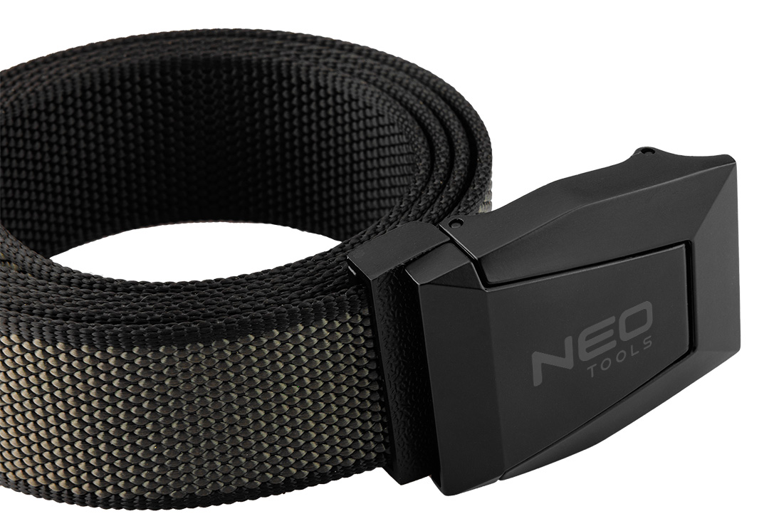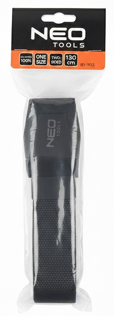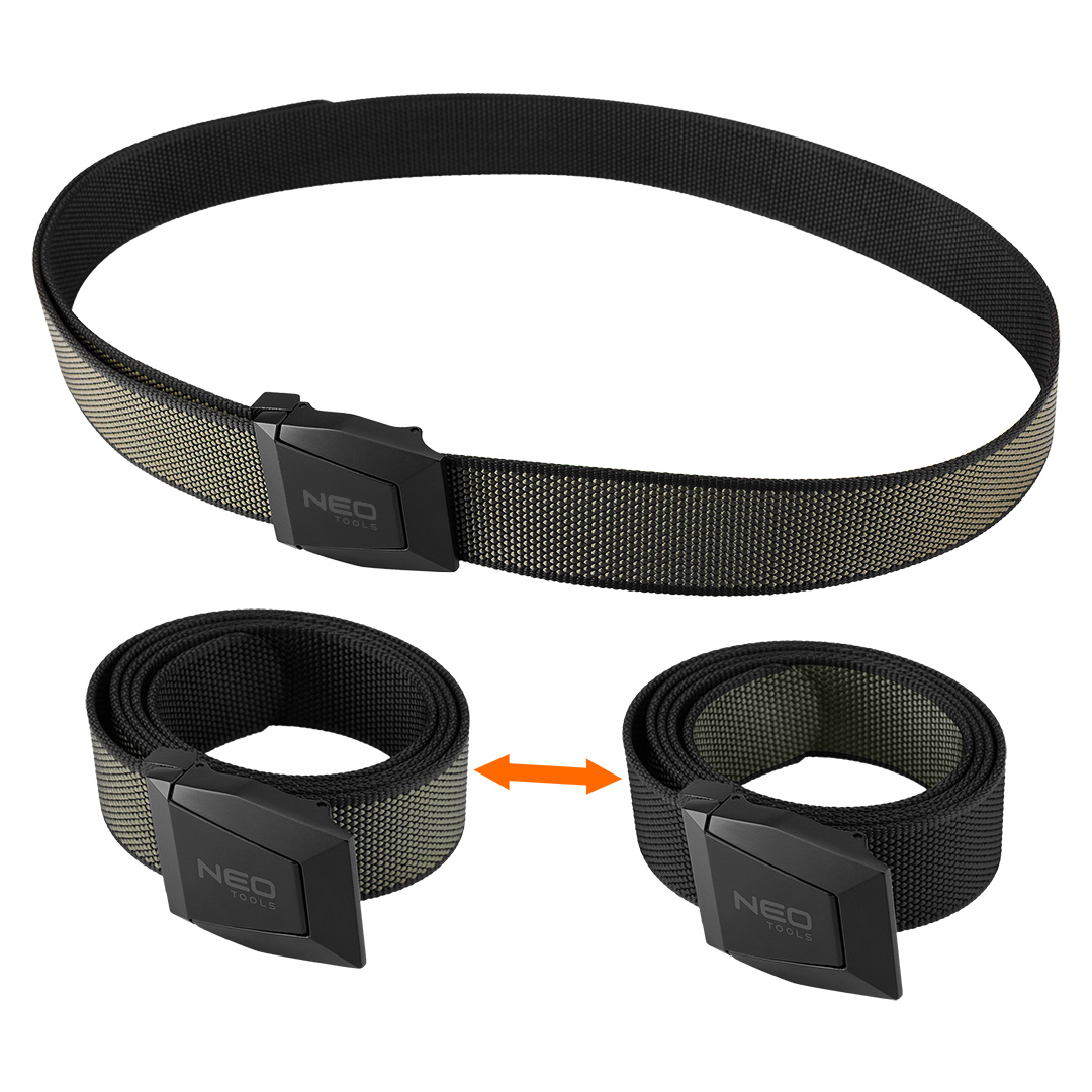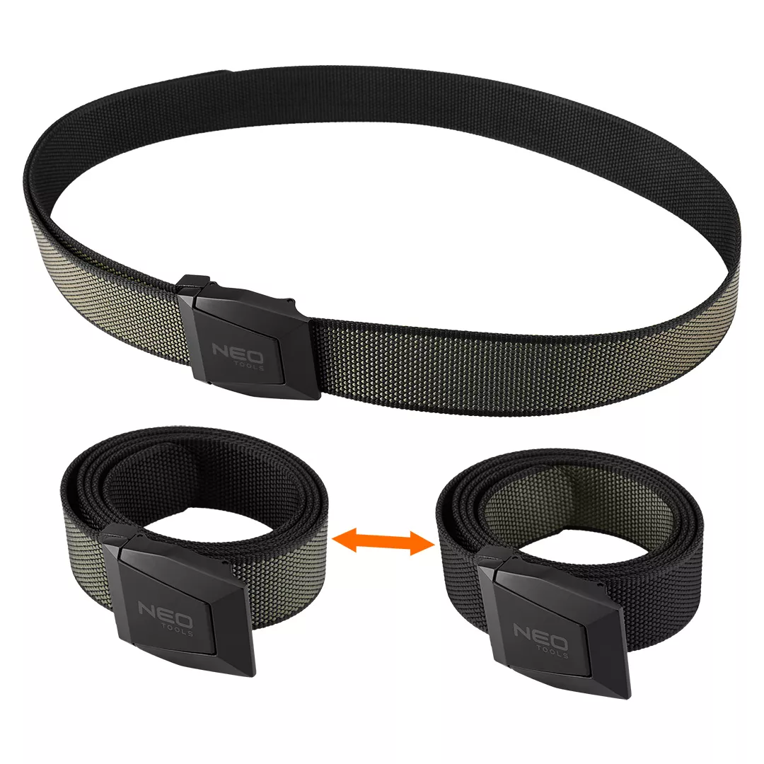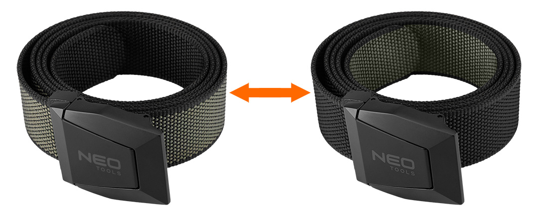 Pasek do spodni dwustronny, długość 130 cm 81-903 marki NEO TOOLS to praktyczne akcesorium umożliwiające zmianę wyglądu w zależności od potrzeb. Wykonany z poliestru, posiada dwukolorową konstrukcję – czarną i szarą, pozwalając na użytkowanie paska z obu stron. Wyposażony jest w klamrę wykonaną ze stopu cynku z logo NEO TOOLS, zapewniającą trwałość i stabilne zapięcie. Pasek ma długość 130 cm i sprawdzi się zarówno w codziennym użytkowaniu, jak i jako element odzieży roboczej.