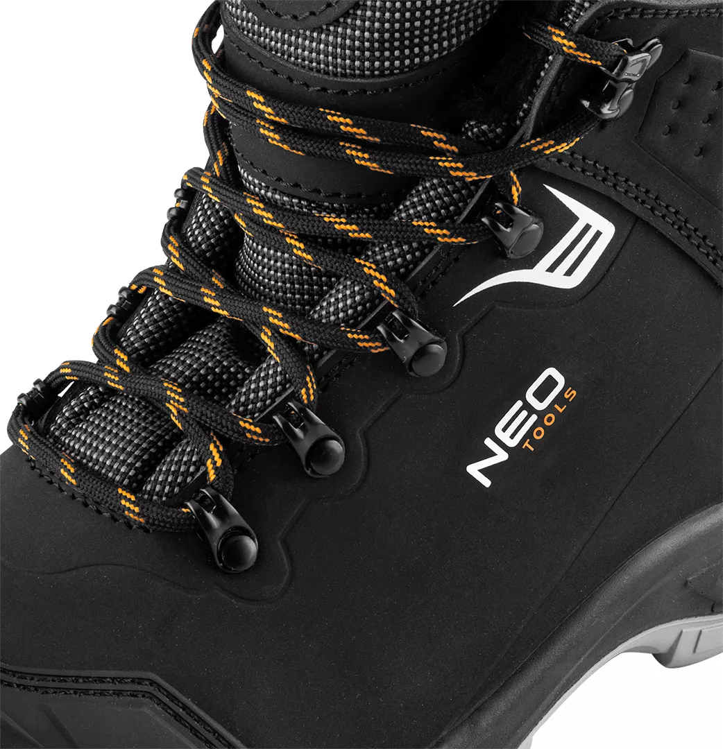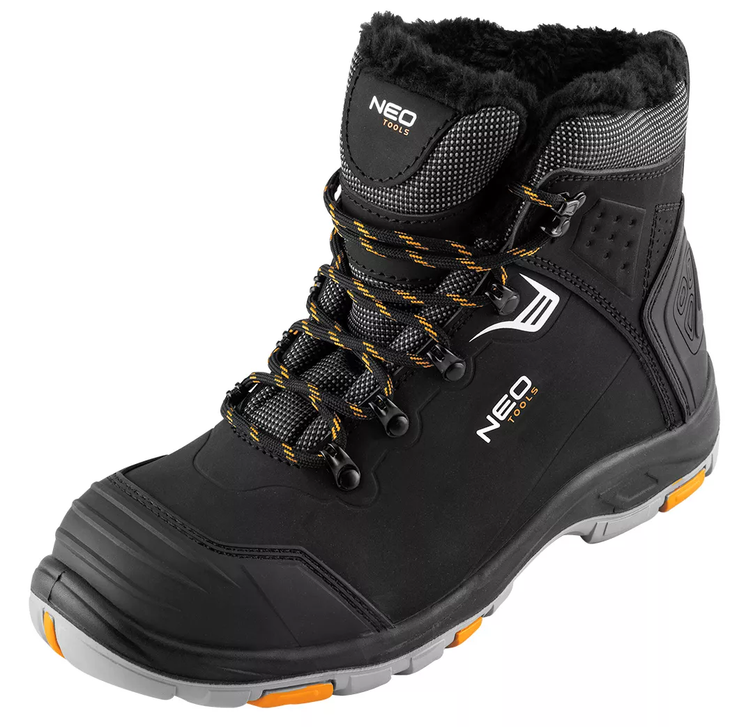 Trzewiki robocze ocieplane S1 SR CI FO, kompozytowy podnosek, rozmiar 40, 82-177-40 marki NEO TOOLS to obuwie ochronne wykonane w kategorii S1 SR CI FO. Wyposażone zostały w kompozytowy podnosek zapewniający ochronę przed uderzeniami z energią równą 200 J. Cholewka wykonana jest z nubuku, dzianiny poliestrowej oraz TPR. Te buty marki NEO TOOLS posiadają wyściółkę z dzianiny siatkowej, wkładkę z pianki HI-POLY oraz podeszwę z PU/PU. Model charakteryzuje się właściwościami antyelektrostatycznymi, zabudowaną piętą i absorpcją energii w części piętowej. Wzmocnienia z TPR na czubkach oraz pięcie zwiększają odporność butów na uszkodzenia, a odblaskowa nić w sznurowadłach poprawia ich widoczność. Trzewiki robocze ocieplane NEO TOOLS posiadają certyfikat CE.