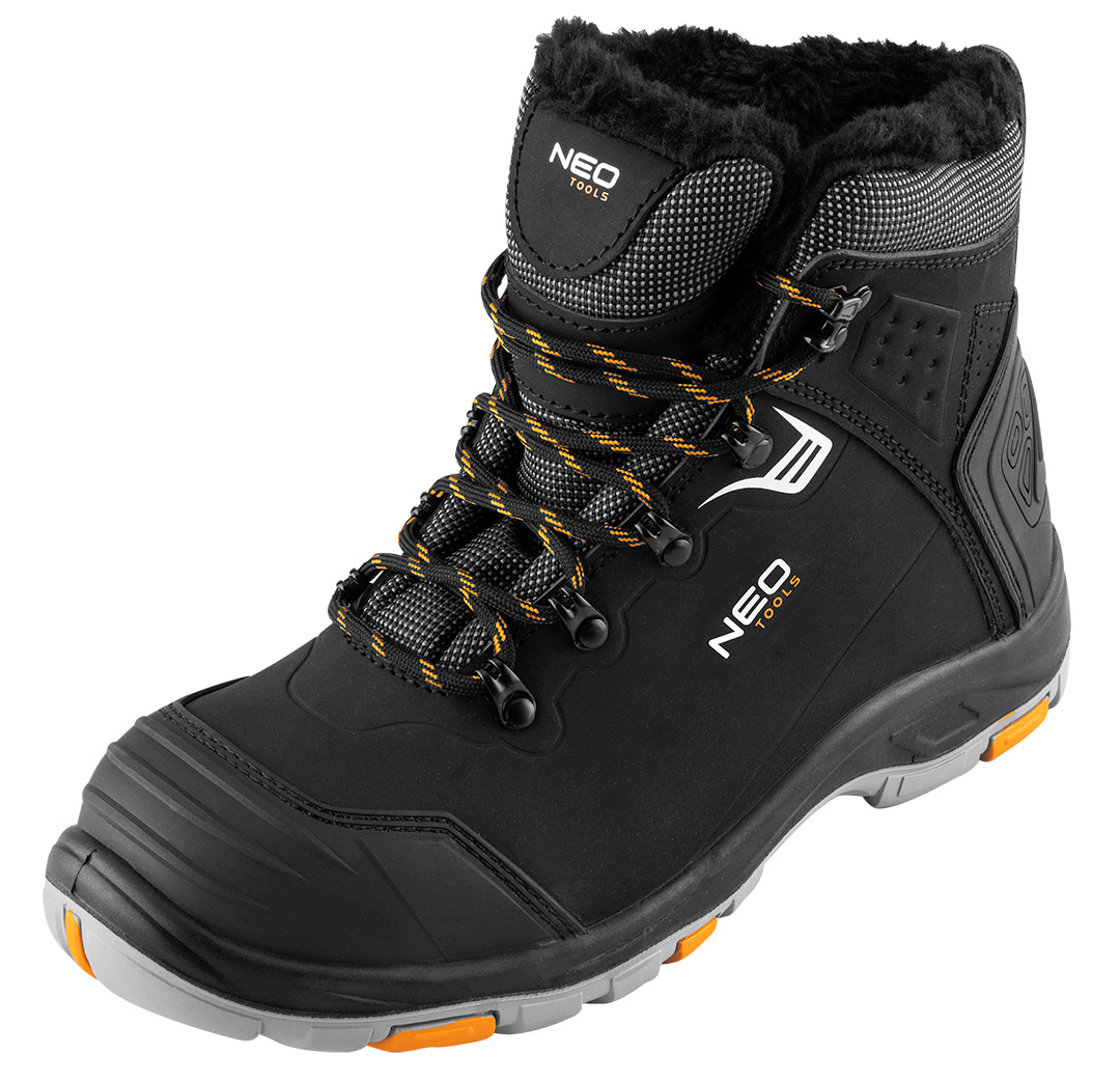 Trzewiki robocze ocieplane S1 SR CI FO, kompozytowy podnosek, rozmiar 44, 82-177-44 marki NEO TOOLS to obuwie ochronne wykonane w kategorii S1 SR CI FO. Wyposażone zostały w kompozytowy podnosek zapewniający ochronę przed uderzeniami z energią równą 200 J. Cholewka wykonana jest z nubuku, dzianiny poliestrowej oraz TPR. Te buty marki NEO TOOLS posiadają wyściółkę z dzianiny siatkowej, wkładkę z pianki HI-POLY oraz podeszwę z PU/PU. Model charakteryzuje się właściwościami antyelektrostatycznymi, zabudowaną piętą i absorpcją energii w części piętowej. Wzmocnienia z TPR na czubkach oraz pięcie zwiększają odporność butów na uszkodzenia, a odblaskowa nić w sznurowadłach poprawia ich widoczność. Trzewiki robocze ocieplane NEO TOOLS posiadają certyfikat CE.