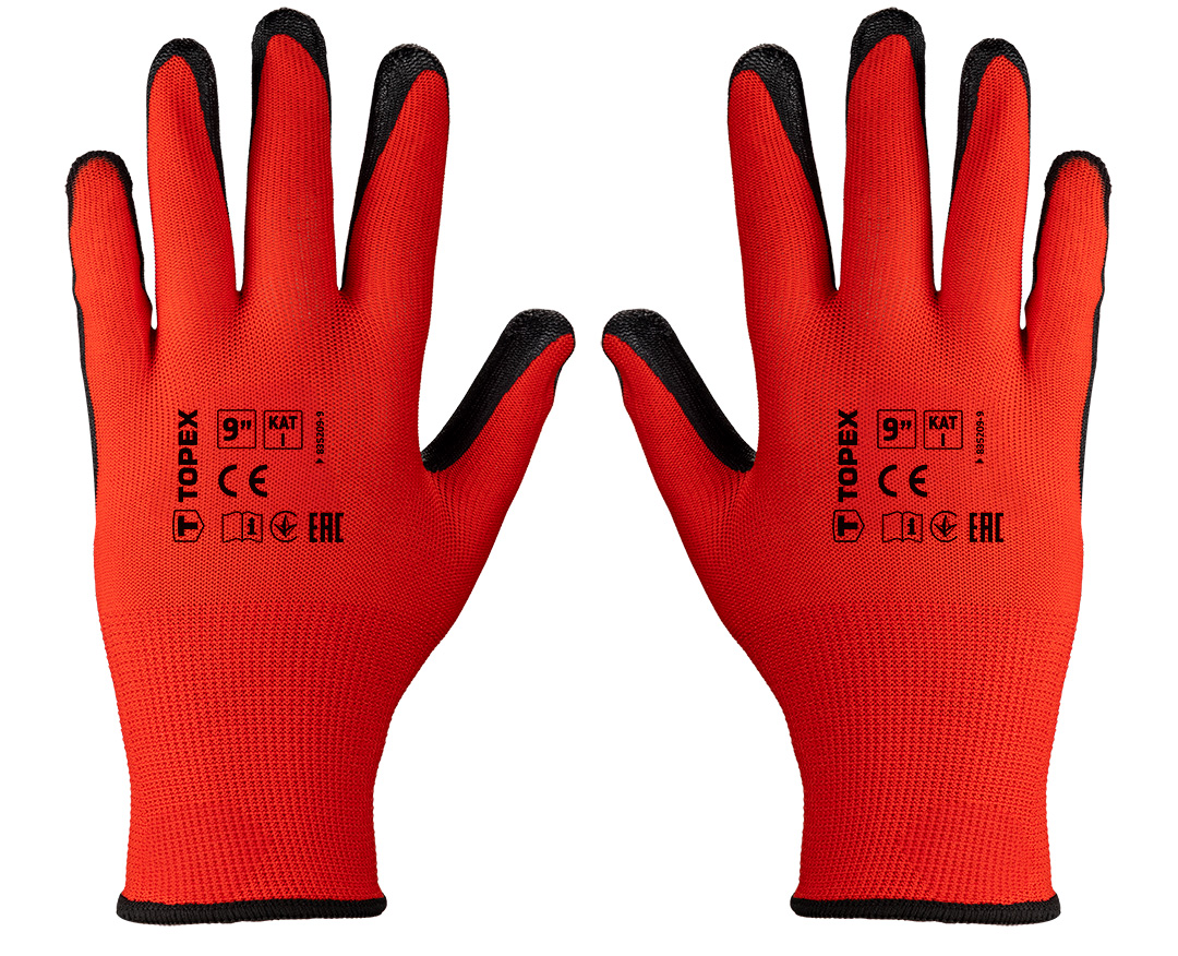 Rękawice robocze, poliester pokryty lateksem (smooth), kat.1, rozmiar 9