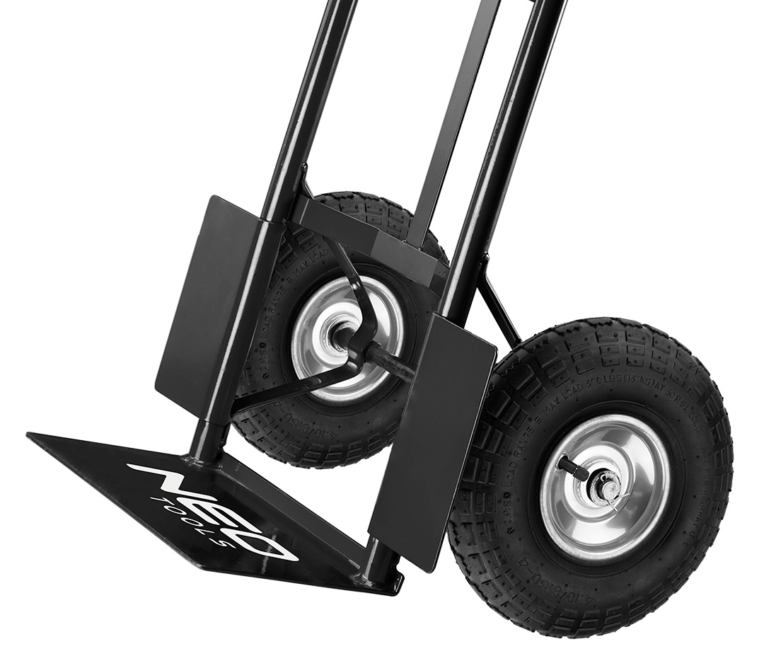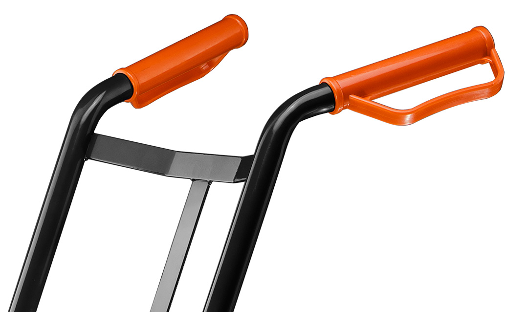 Wózek transportowy, młynarka, udźwig 200kg, platforma ładunkowa o wymiarach 350 x 180 mm, całkowita wysokość 1175 mm, 10” pneumatyczne koła z felgami metalowymi, uchwyty z tworzywa sztucznego z ochroną na palce, ciężar własny 9,8 kg