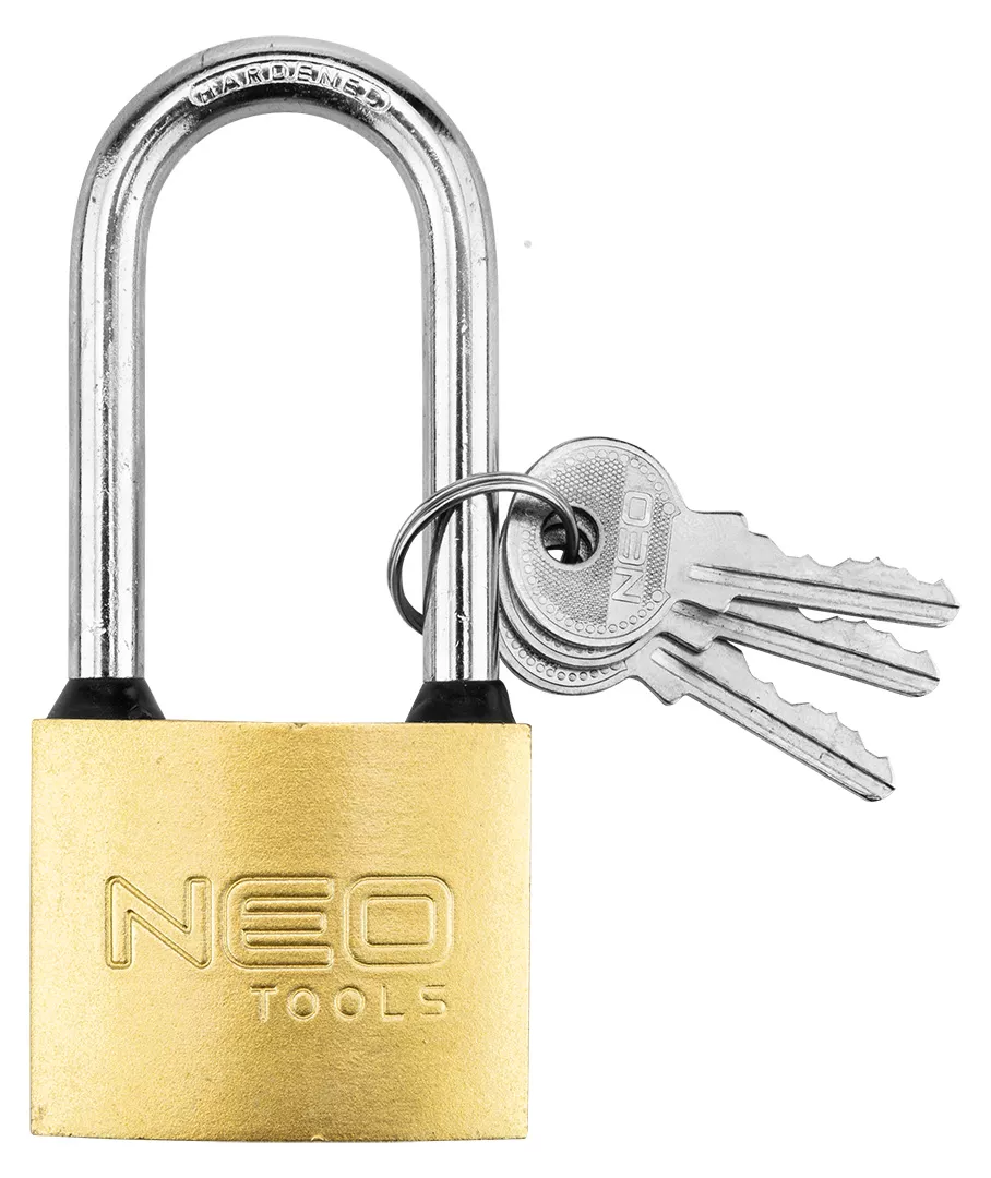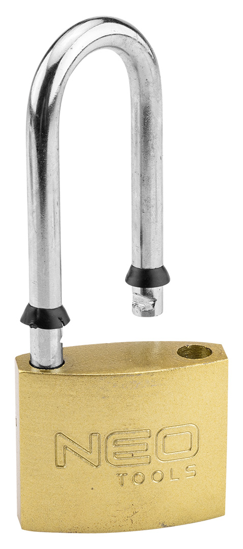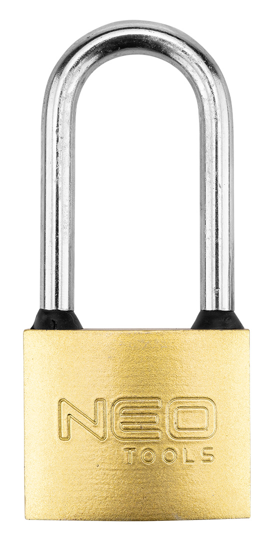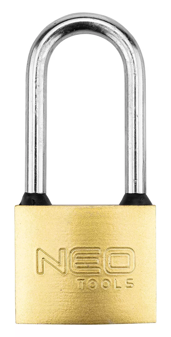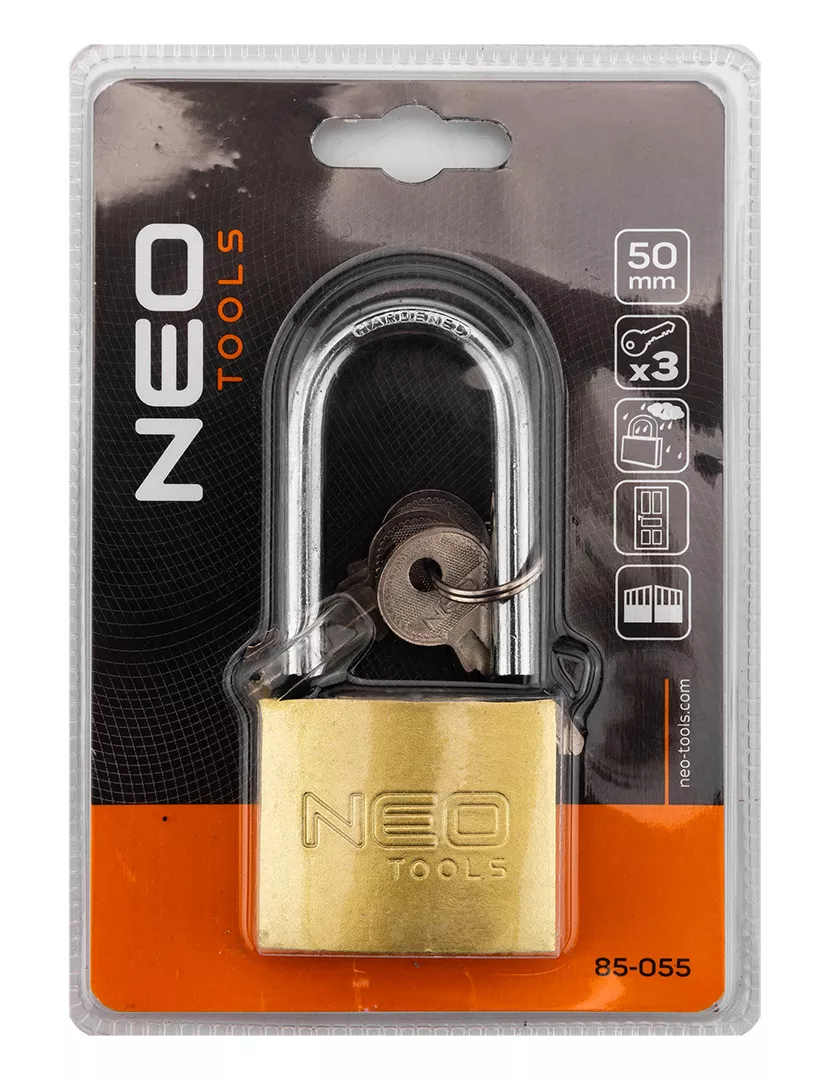 Kłódka z długim jarzmem 50 mm, 3 klucze 85-055 marki NEO TOOLS to żeliwny model z miedzianą powłoką, wyposażony w 3 klucze. Długie jarzmo o średnicy 8 mm i wymiarach 48 x 18 x 103 mm zapewnia odpowiednią wytrzymałość, a zastosowane uszczelki chronią mechanizm przed deszczem, zwiększając tym samym odporność kłódki NEO TOOLS na warunki atmosferyczne. To praktyczne zabezpieczenie, które sprawdzi się w różnych zastosowaniach – zarówno wewnątrz, jak i na zewnątrz pomieszczeń.