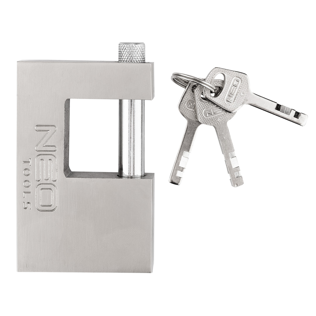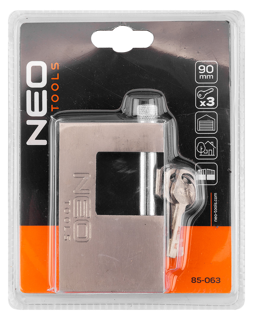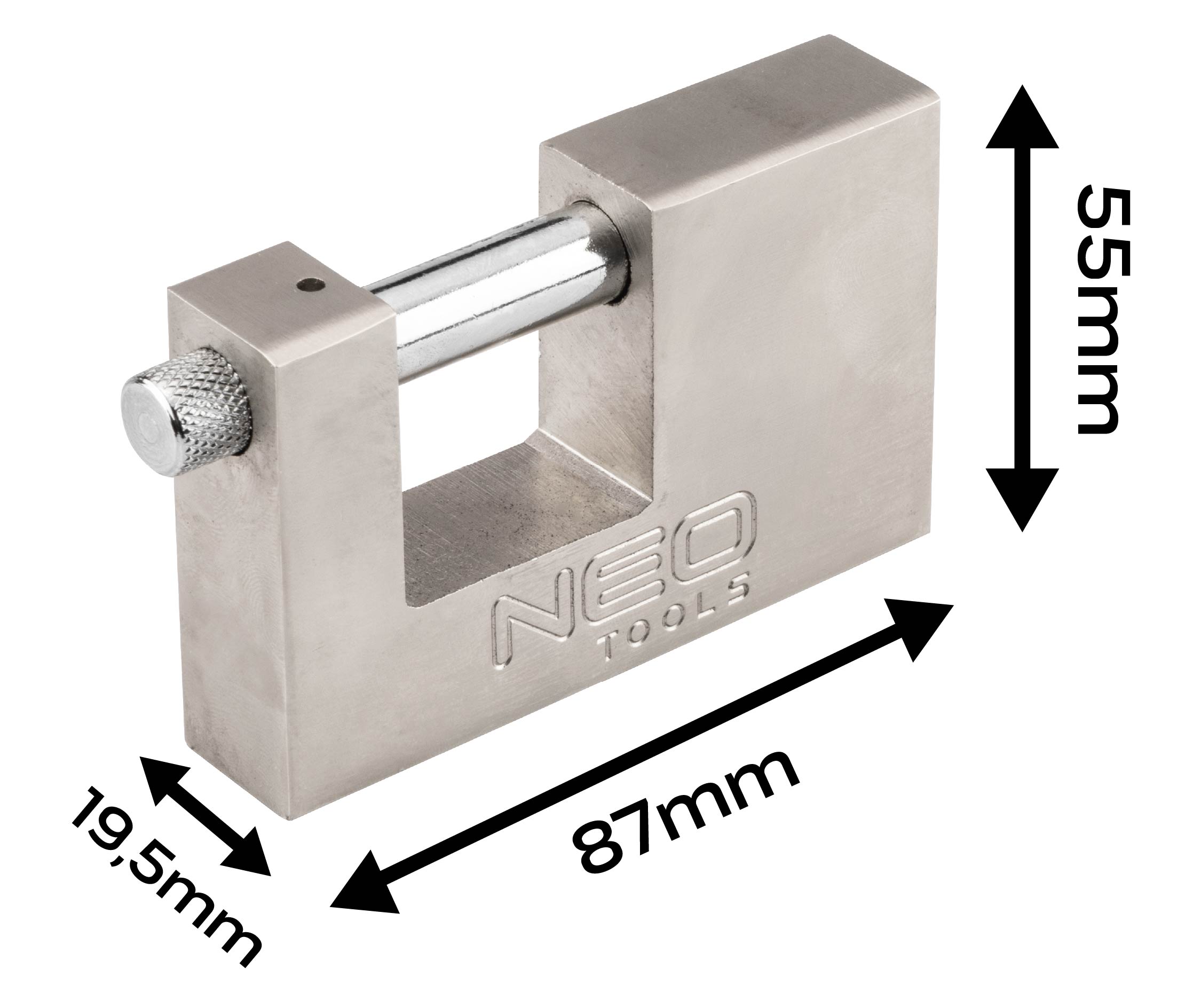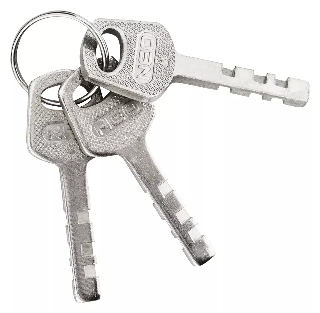 Kłódka trzpieniowa 90 mm, 3 klucze 85-063 marki NEO TOOLS to solidne zabezpieczenie wykonane z żeliwa o wymiarach 87 x 55 x 19,5 mm. Wyposażone w mosiężny zamek, charakteryzuje się wysoką odpornością na warunki atmosferyczne. Średnica jarzma tej kłódki trzpieniowej NEO TOOLS wynosi 12 mm. W zestawie znajdują się 3 klucze – zapewniające wygodę użytkowania i dostęp dla kilku osób. Kłódka sprawdzi się jako praktyczne narzędzie ochronne w zastosowaniach codziennych i zewnętrznych.