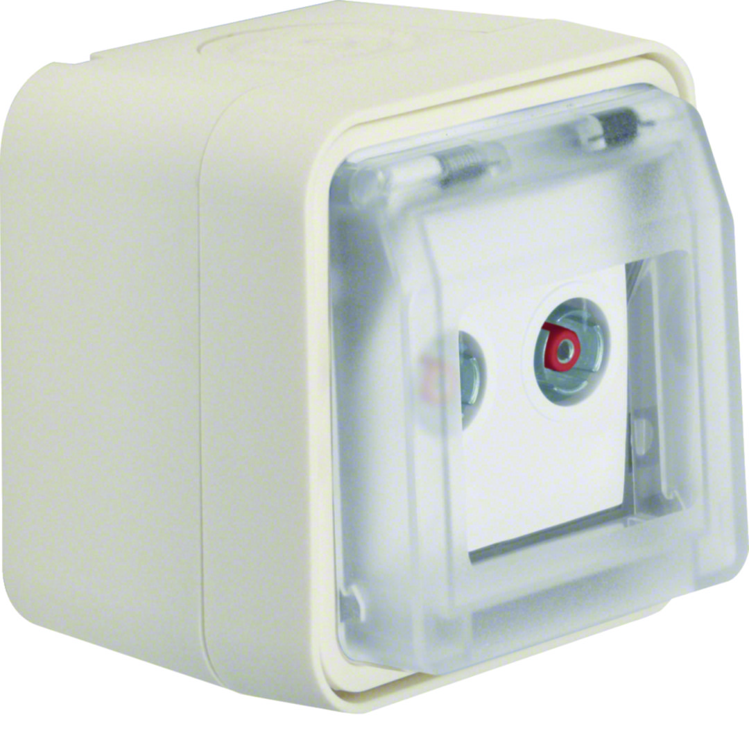 W.1 Gniazdo antenowe R+TV przelotowe 10dB z pokrywą, kompletne, IP55, biały