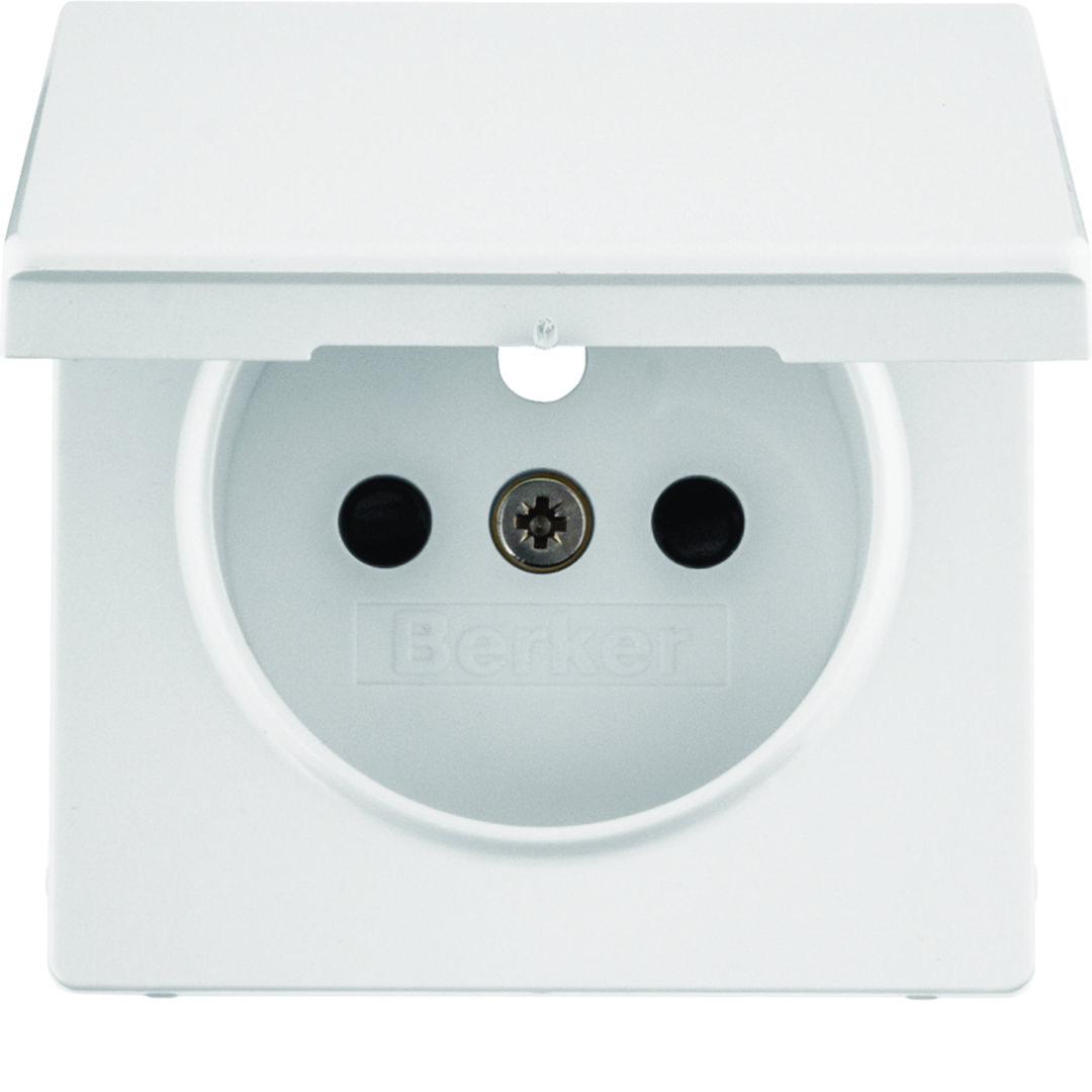 Q.x Płytka czołowa z przysłonami styków do gniazda z uziem. z pokrywą, biały