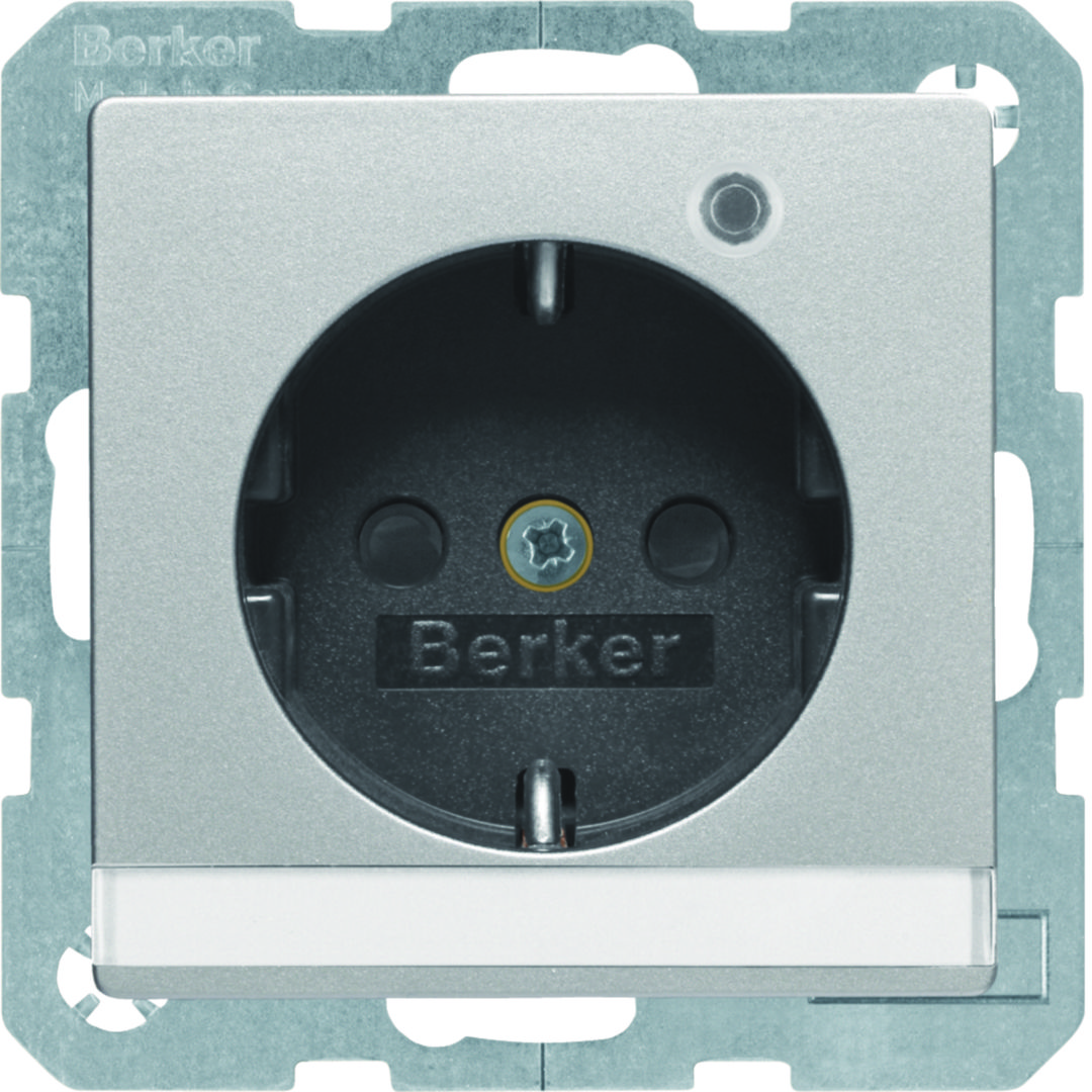 Q.x Gniazdo SCHUKO z lamką kontrolną i polem opisowym, alu aksamit