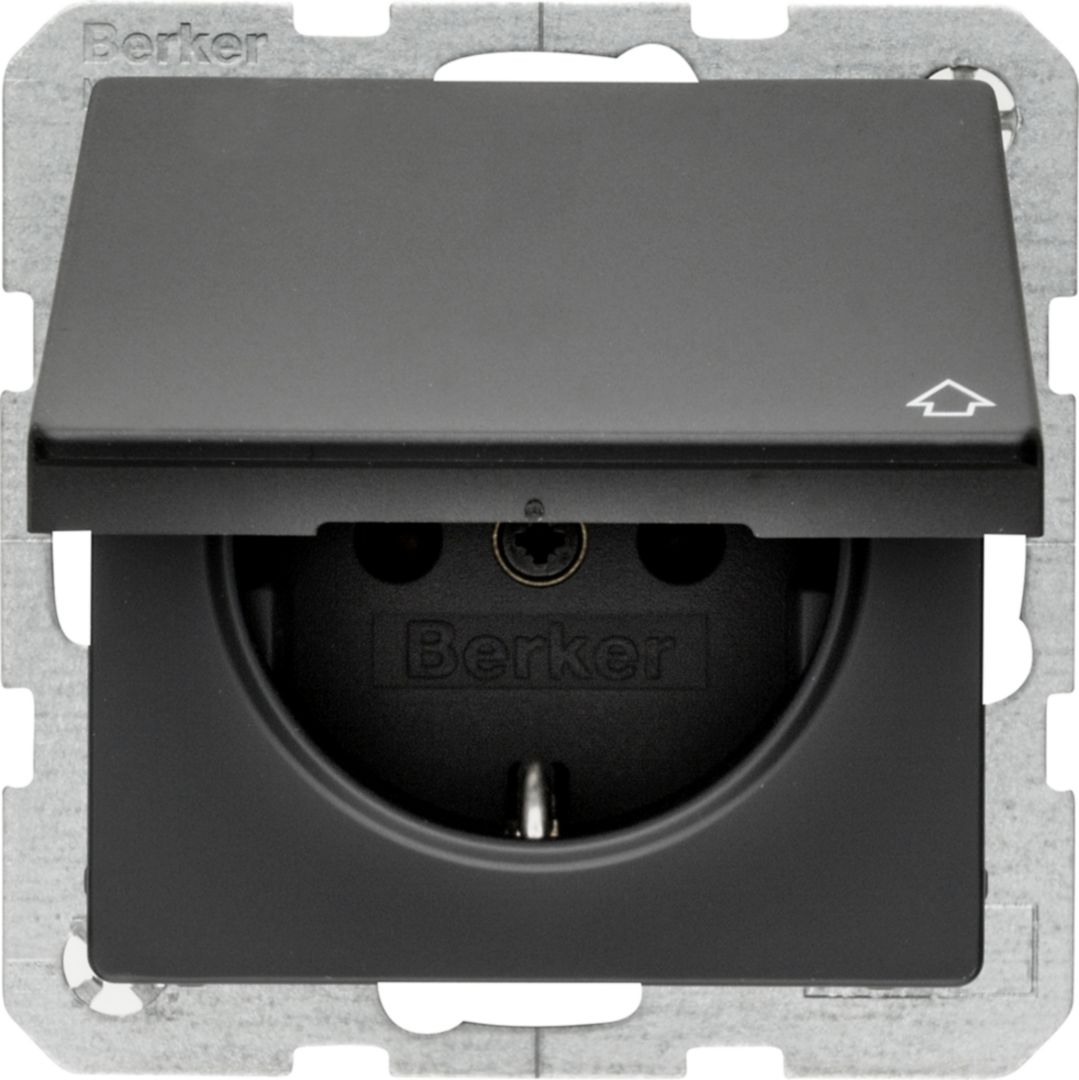 Q.x Gniazdo SCHUKO z pokrywą, antracyt aksamit