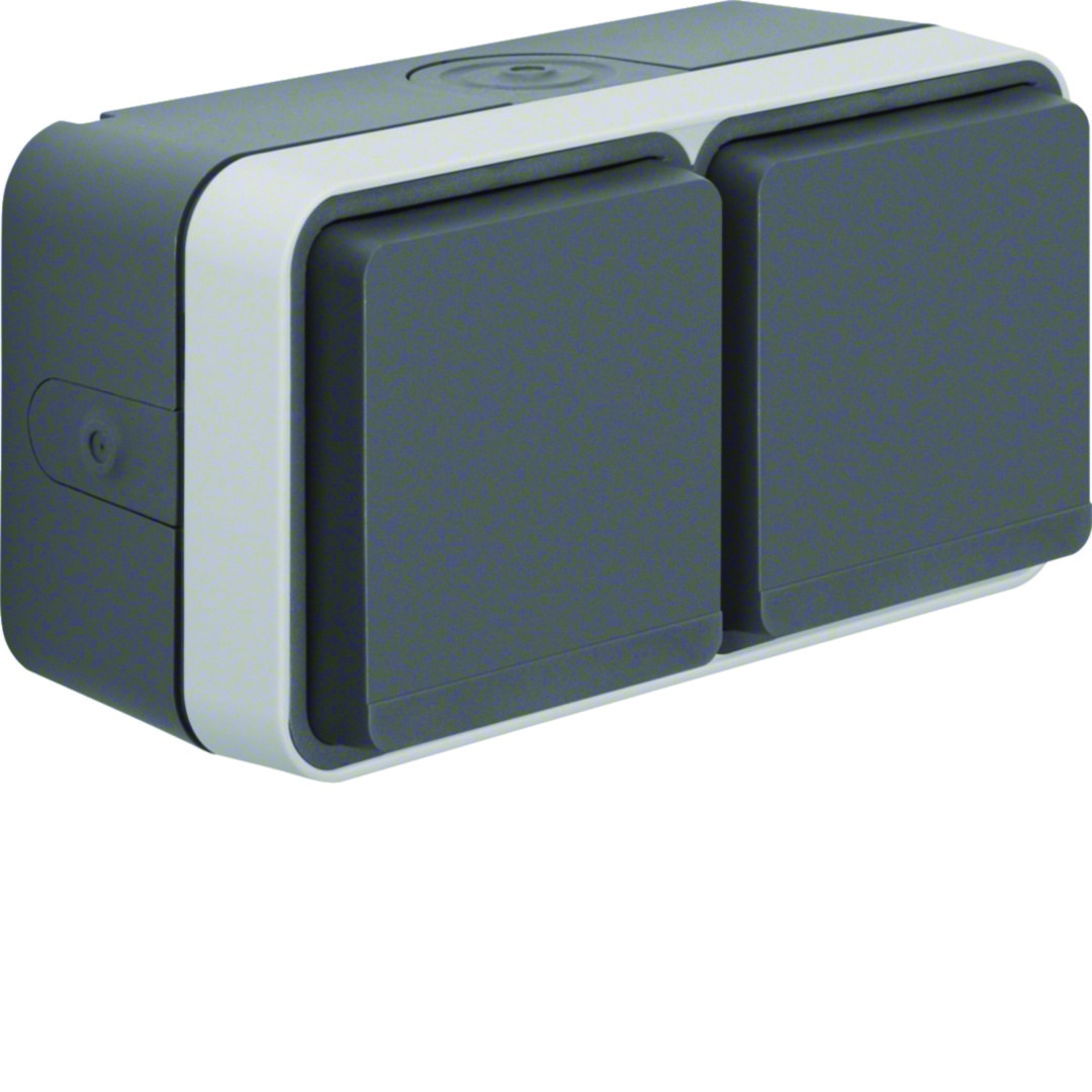 W.1 Gniazdo SCHUKO 2P+Z 2-kr poziome 4 wejścia, kompletne, IP55, szary
