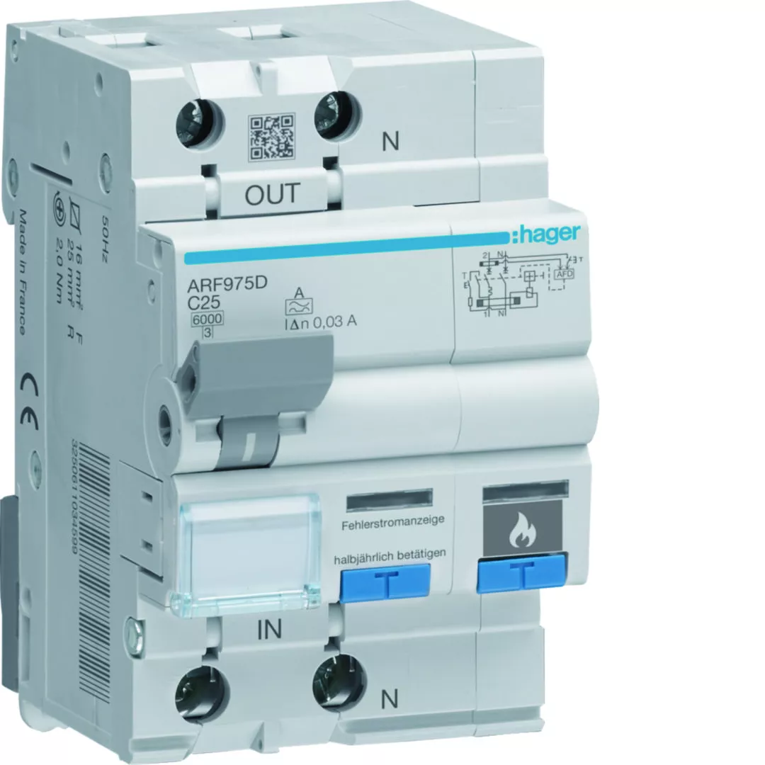 AFDD detektor iskrzeń z członem nadprądowym i różnicowoprądowym 1P+N 6kA C 25A