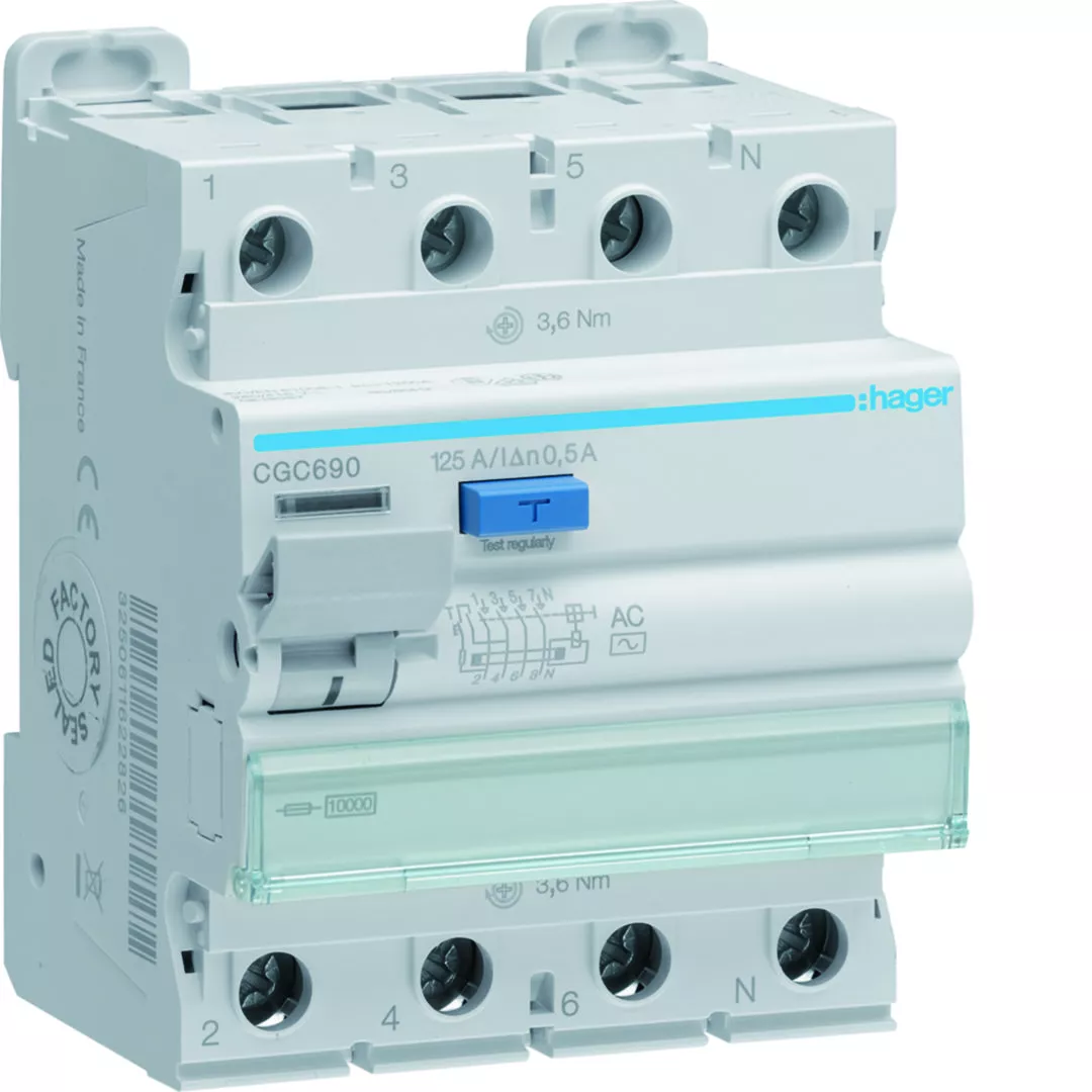 RCCB Wyłącznik różnicowoprądowy 3P+N 125A 500mA 10kA AC