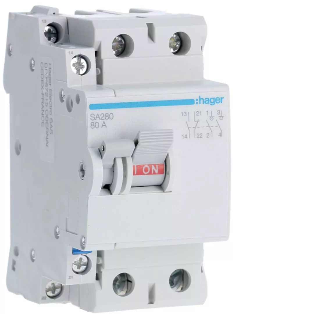 Modułowy rozłącznik izolacyjny z możliwością wyzwalania 2P 80A 230VAC, styk pom.