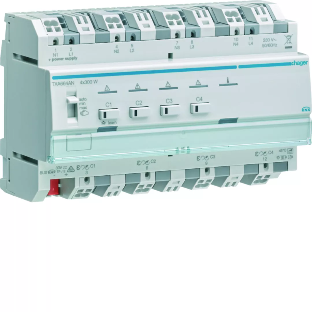 KNX e/s Ściemniacz uniwersalny 4-kan 4x300 W, wielofazowy, f. sumowania obc.