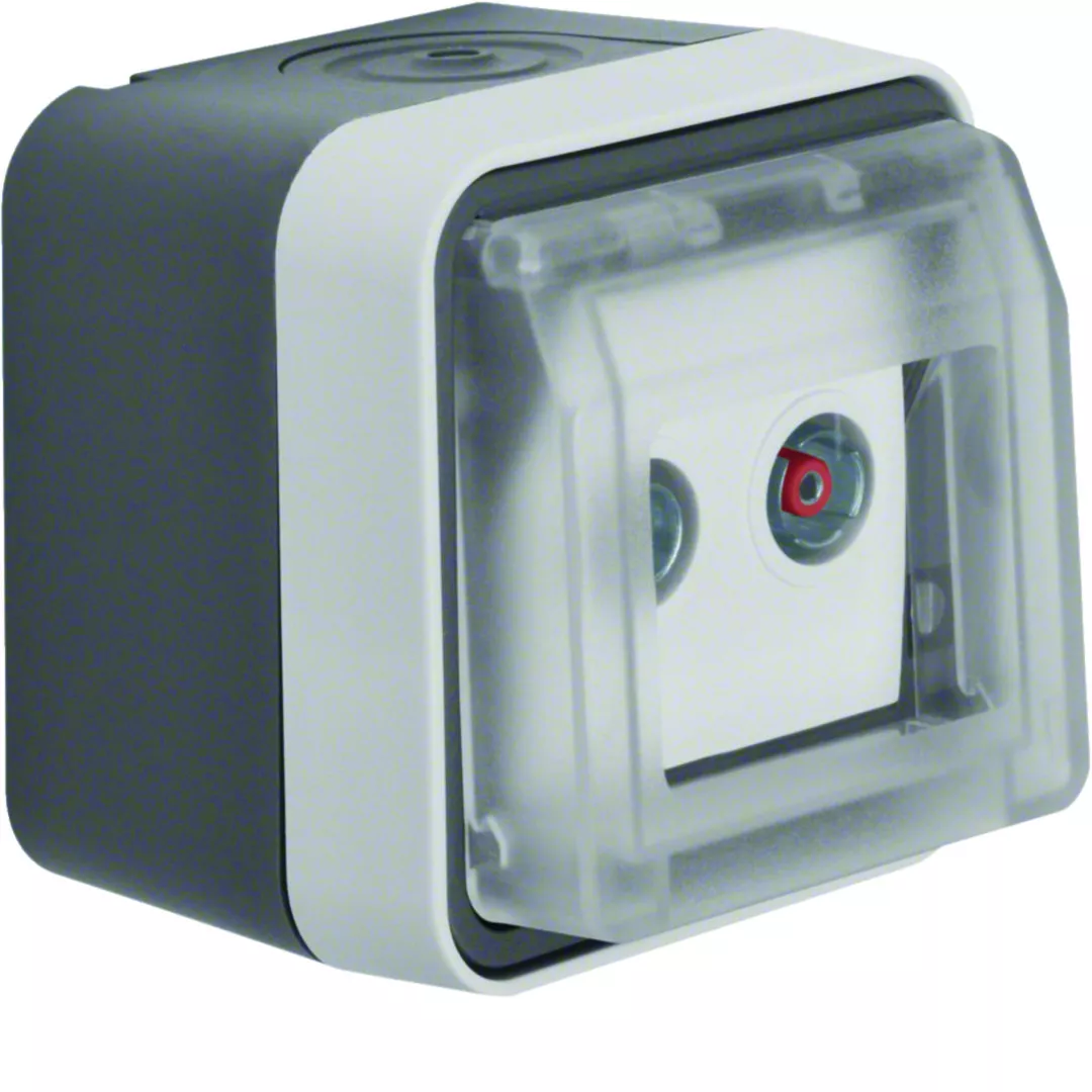 W.1 Gniazdo antenowe R+TV przelotowe 10dB z pokrywą, kompletne, IP55, szary