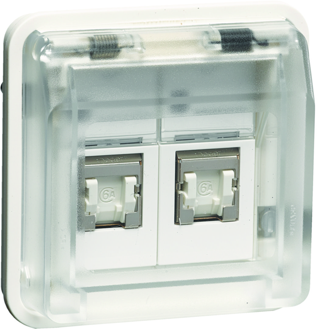W.1 Moduł gniazdo komp. 2-kr UAE 8/8-bieg. z pokrywą, kat. 6/klasa E IP55, biały