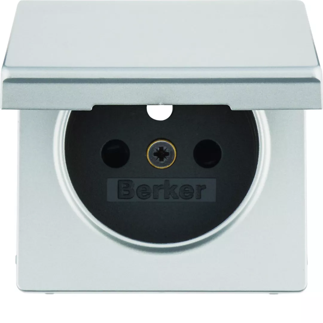 Q.x Płytka czołowa z przysłonami styków do gniazda z uziemieniem z pokrywą, alu