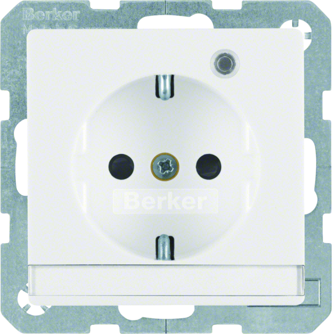 Q.x Gniazdo SCHUKO z lamką kontrolną i polem opisowym, biały, aksamit