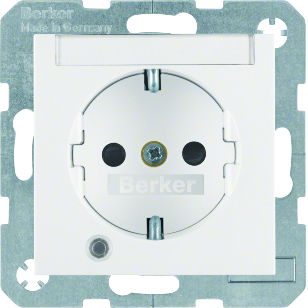 B.X Gniazdo SCHUKO z uz., d. kontr. LED i p.opis. biały
