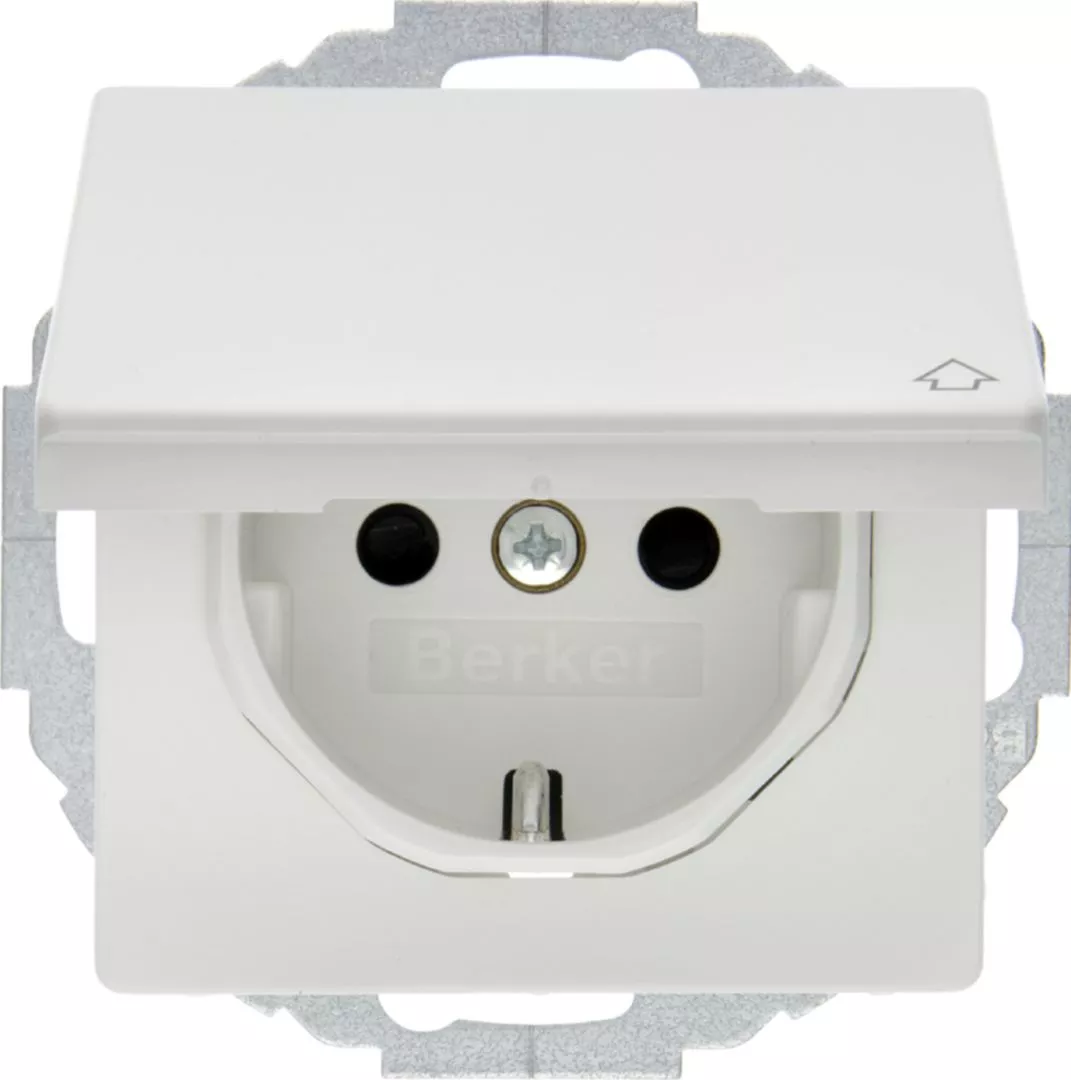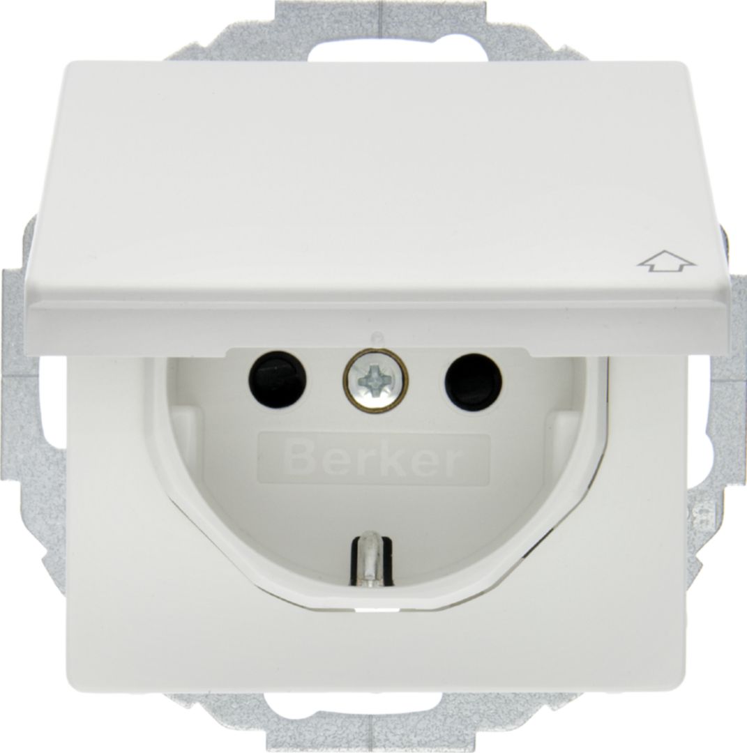Q.x Gniazdo SCHUKO z pokrywą z podwyż. ochr. st. biały, aks