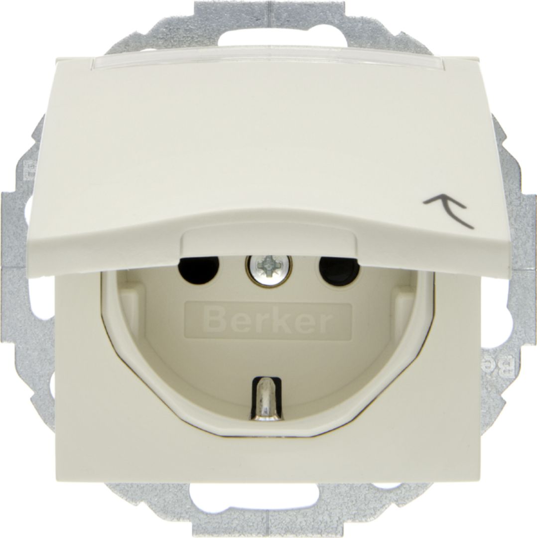 B.Kwadrat Gniazdo SCHUKO z pokrywą i polem opisowym z przysłonami kremowy połysk