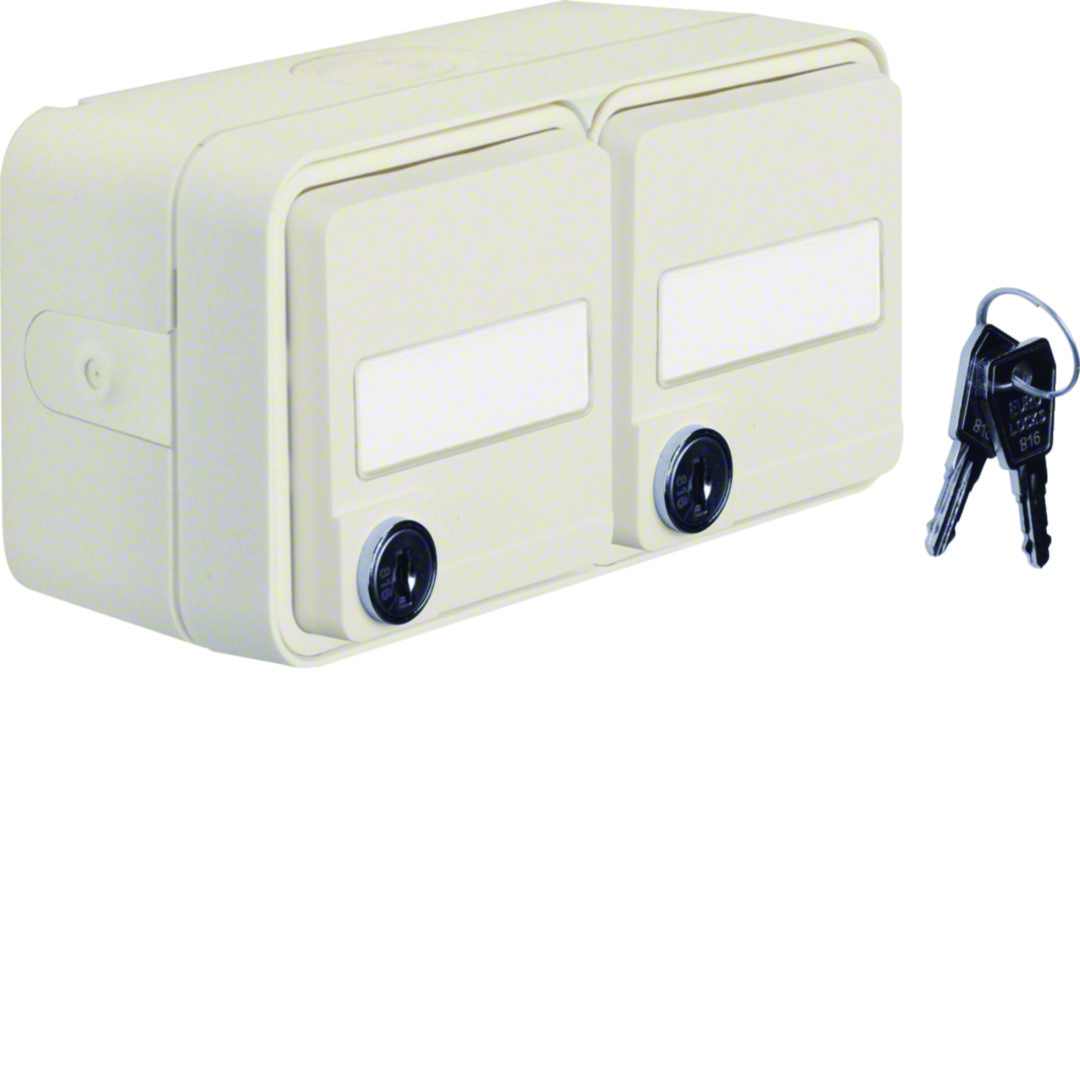 W.1 Gniazdo SCHUKO 2P+Z na klucz z polem opisowym, 2-kr, kompletne, IP55, biały
