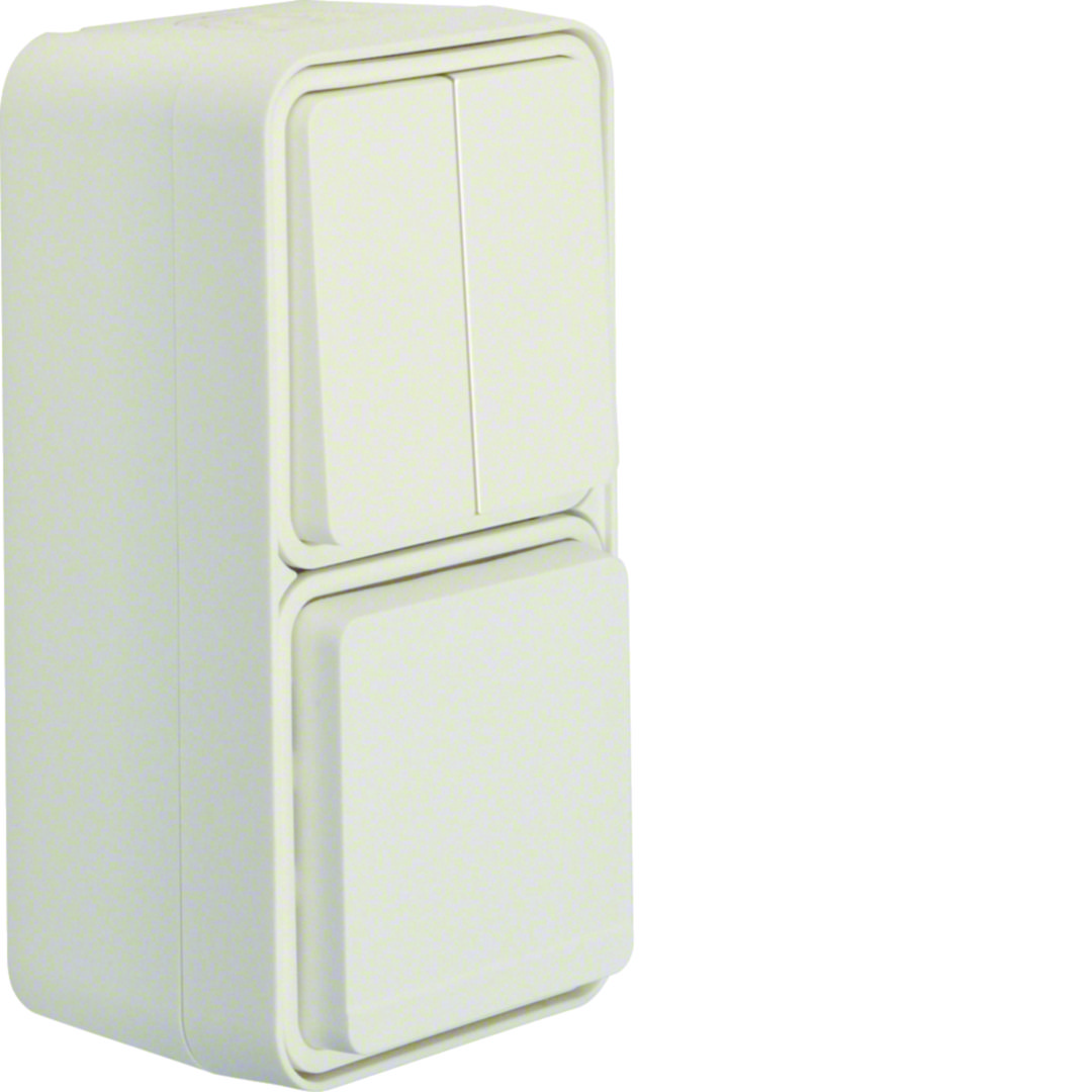 W.1 Łącznik seryjny z gniazdem SCHUKO pionowy kompletny IP55 biały
