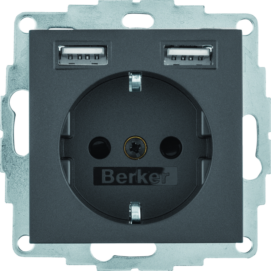 B.x Gniazdo SCHUKO z gniazdem ładowania USB 2,4 A; samozaciski; antracyt mat