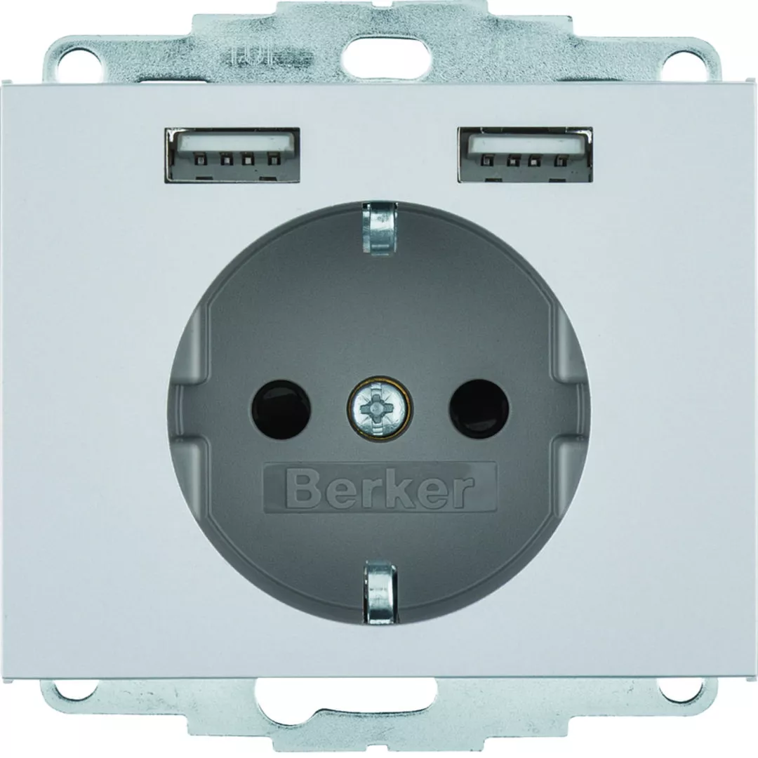 K.5 Gniazdo SCHUKO z gniazdem ładowania USB 2,4 A; samozaciski; aluminium mat