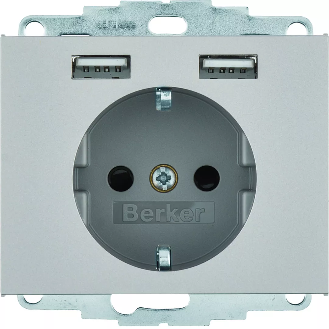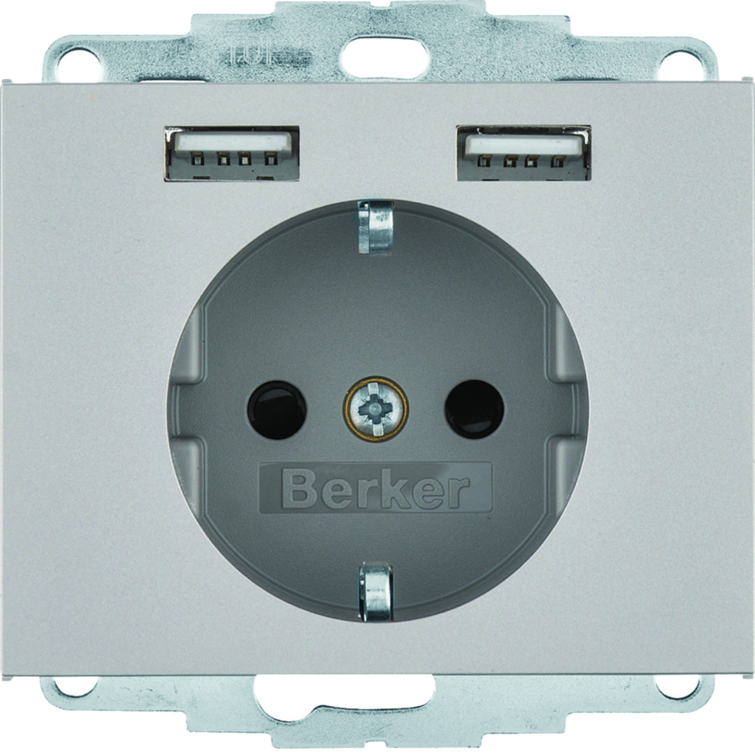 K.5 Gniazdo SCHUKO z gniazdem ładowania USB 2,4 A; samozaciski; stal szlachetna